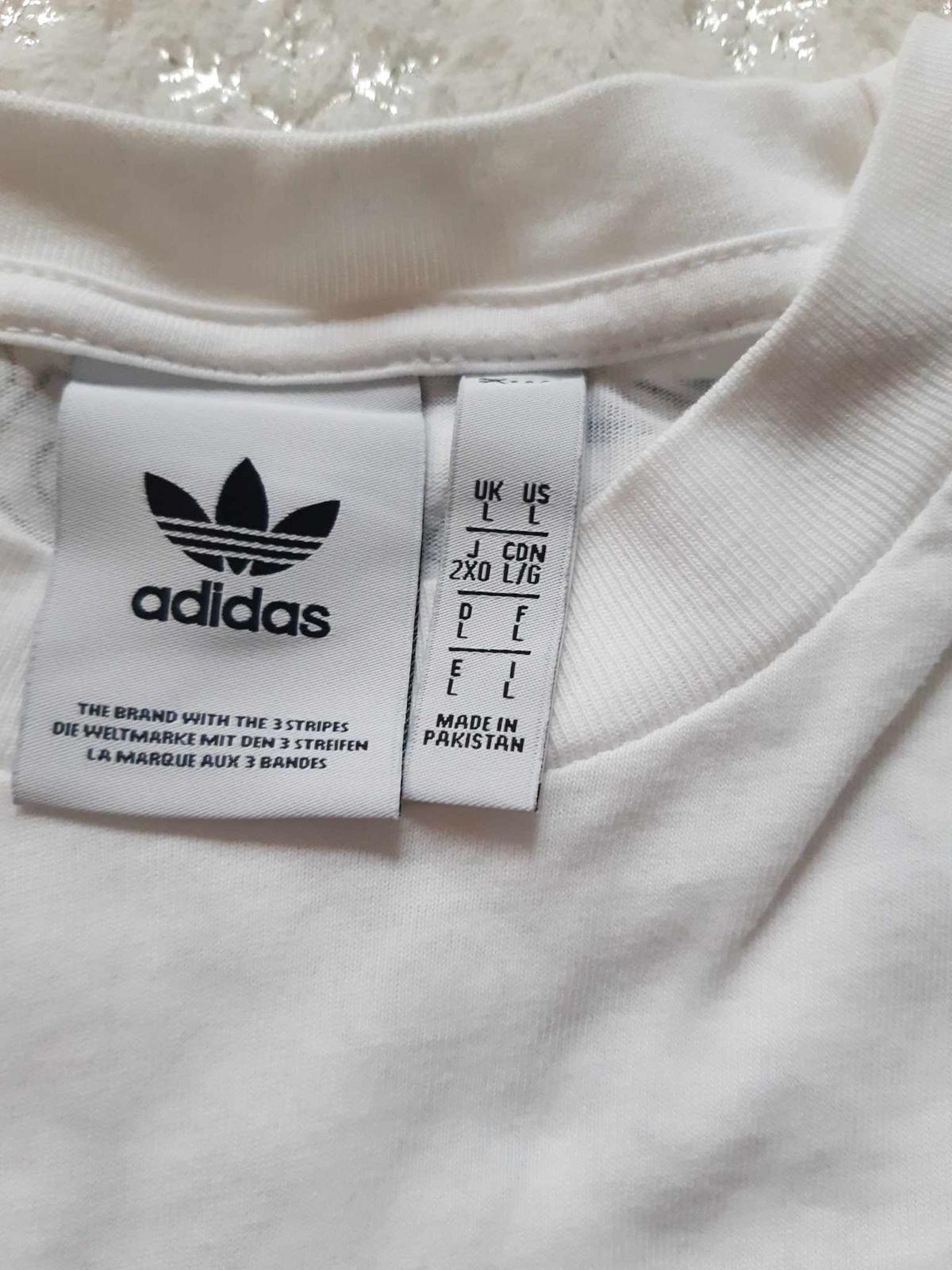 Krásne biele tričko. Je to original adidas. Zadná strana celoznaková. Takéto isté mám aj v takej petrolejovej farbe.