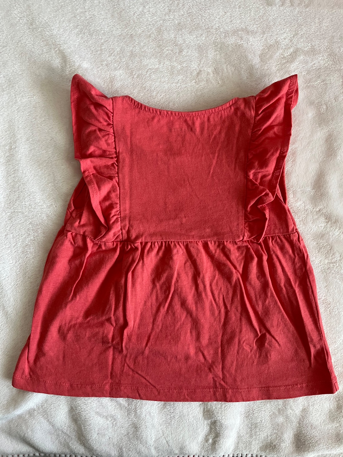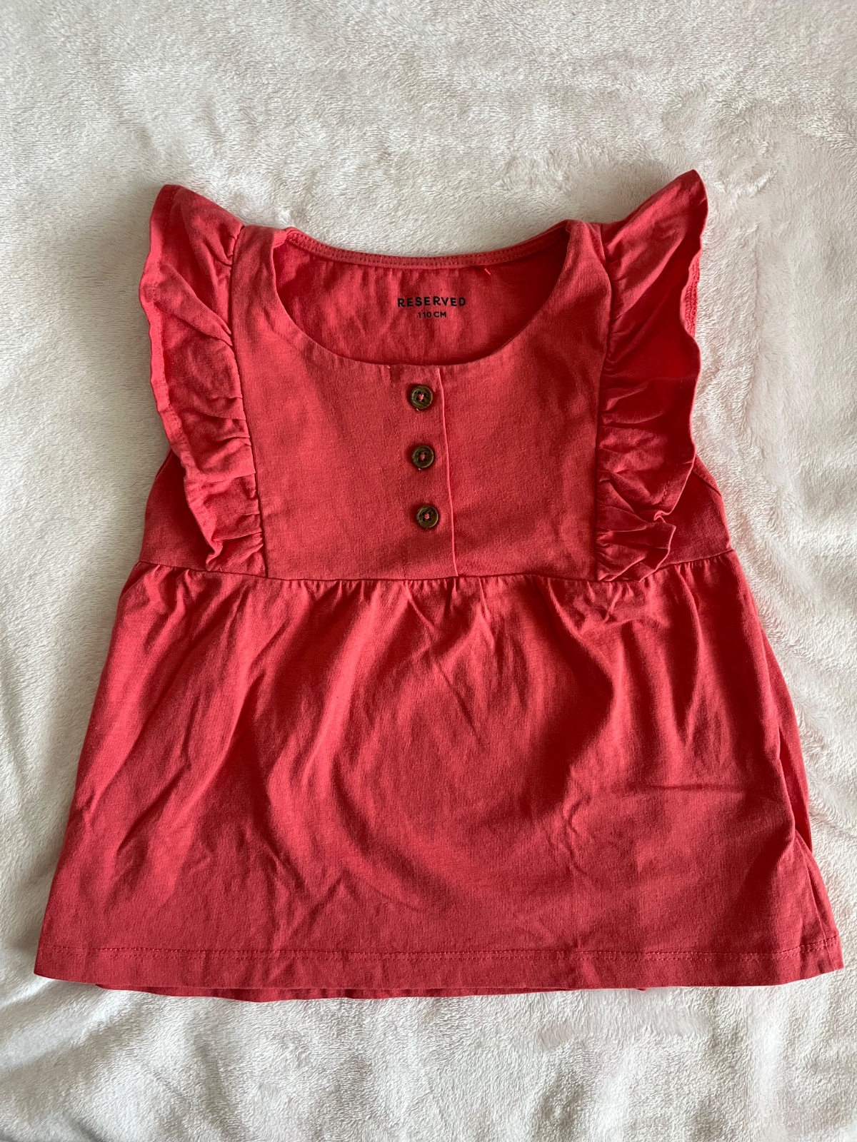 Rebrovane tričko Reserved Veľkosť 86,92,98,104,110 Tričko jednoduchého strihu z bavlnenej látky s prímesou elastických vlákien. Okrúhly výstrih Krátke rukávy Volánové lemovanie na spodnom leme a ma...