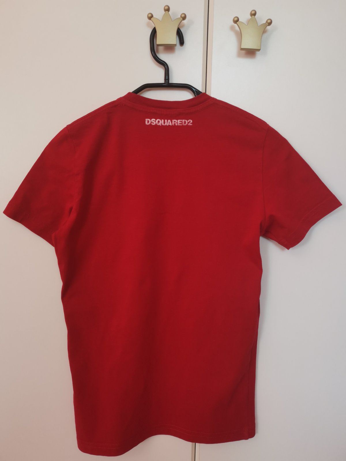Bavlnené tričko zn. Dsquared2, veľkosť písaná 12 rokov. Samotné tričko je bez poškodení, potlač je] iaľ nekvalitná a každým ďalším praním viac a viac bledne. Cena prispôsobená stavu - PC bola 80 eur.