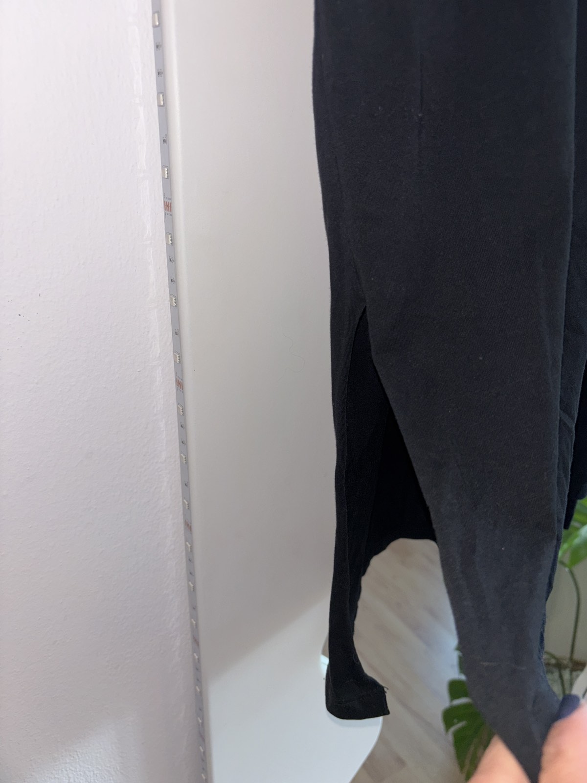 Výborný stav, predĺžené, dole rozarky, sýto čierne, veľkosť S, aj na M, s.pod pazuchami 47 cm, d. 74-79 cm