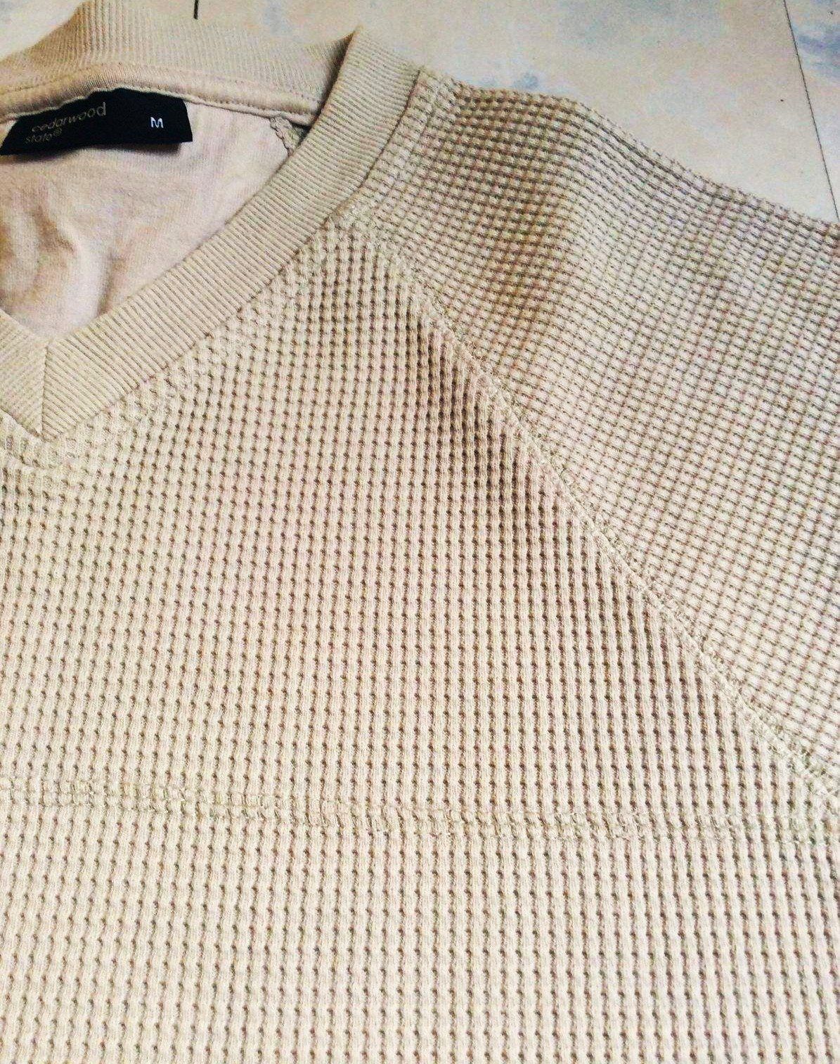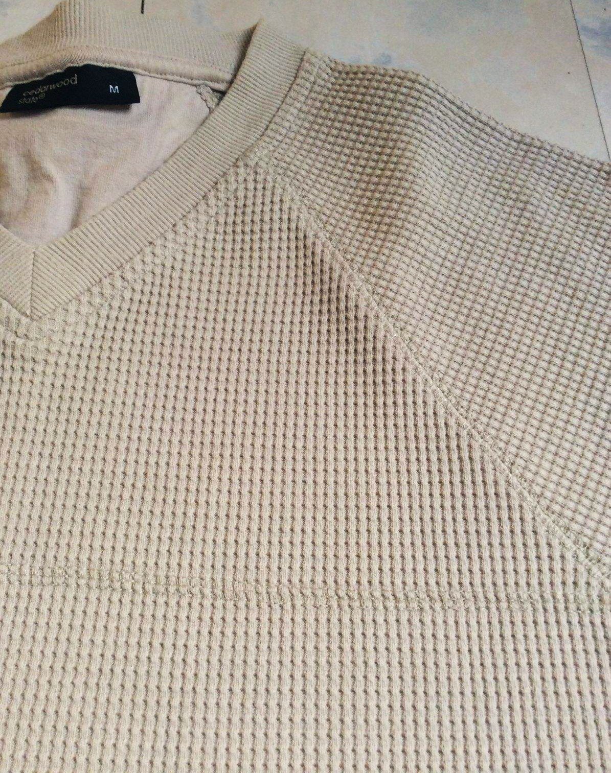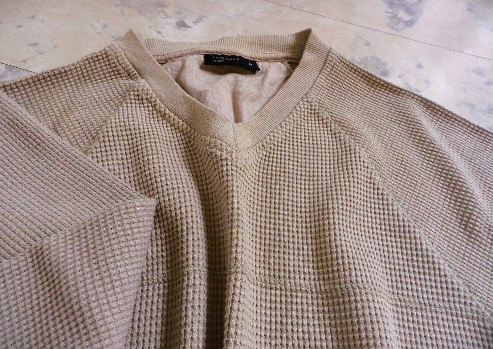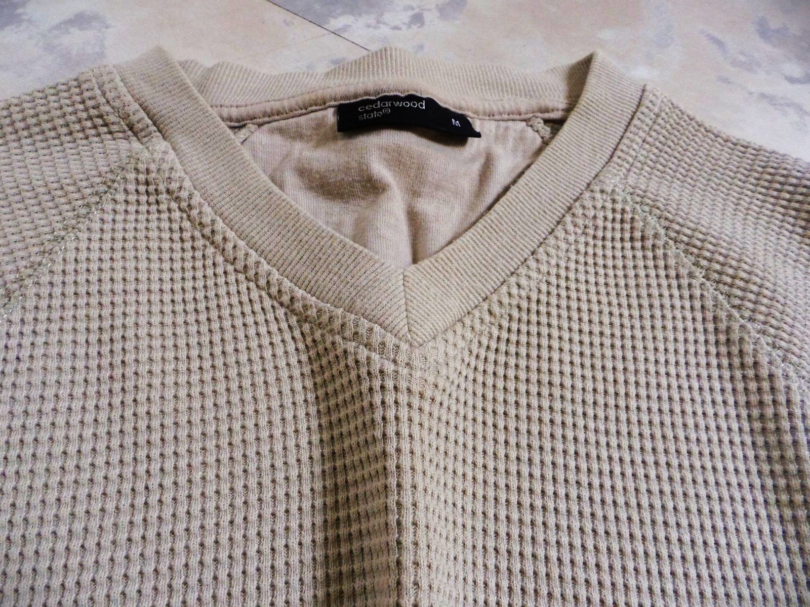 pánske béžové hrubšie tričko s vaflovou štruktúrou od značky Cedarwood State s plytkým výstrihom do V,veľmi kvalitné, neznosené,výborný materiál - hrubší, krásna plastická štruktúra materiálu,raglánový rukáv,super na bežné nosenie ale aj ako termotričko na lyžovačku a zimné športy