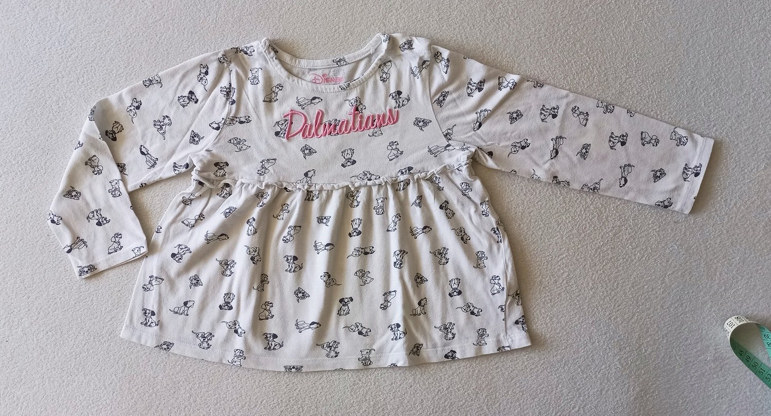 Biele tričko alebo tunika s dalmatíncami. Značka Reserved, veľkosť 98. Rozmery sú na fotkách, 100% bavlna. Zapínanie dvoma cvokmi na krku. Máme viacero detských vecí, môžete si zostaviť vlastný balíček. Pri kúpe viac vecí zľava.