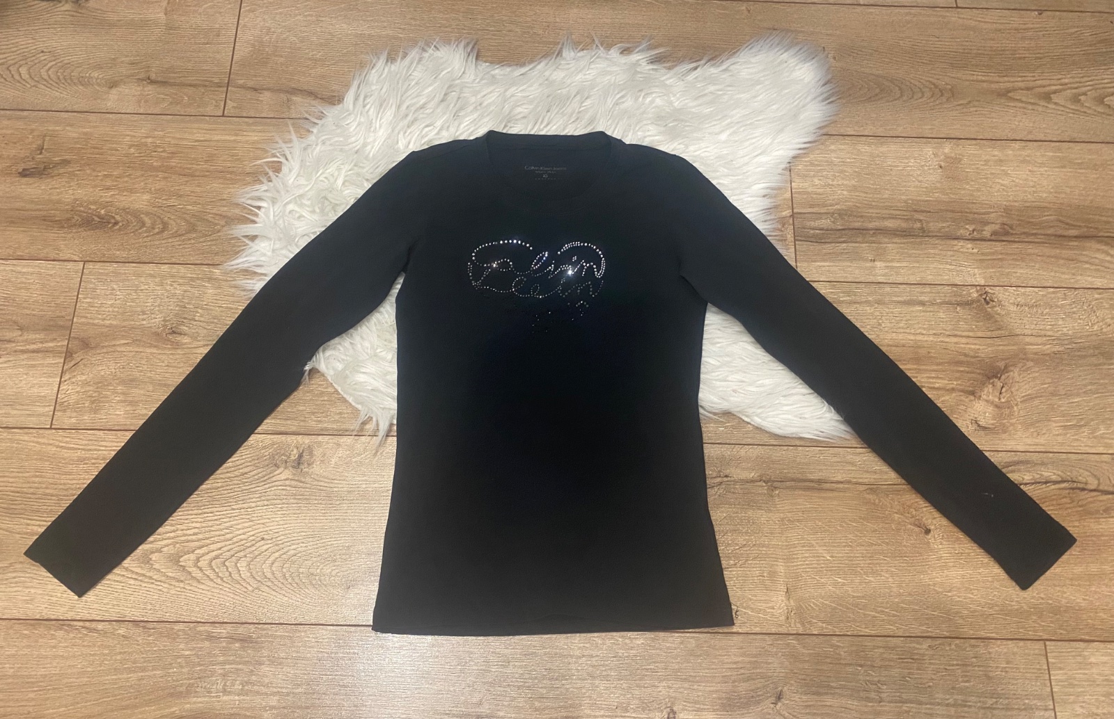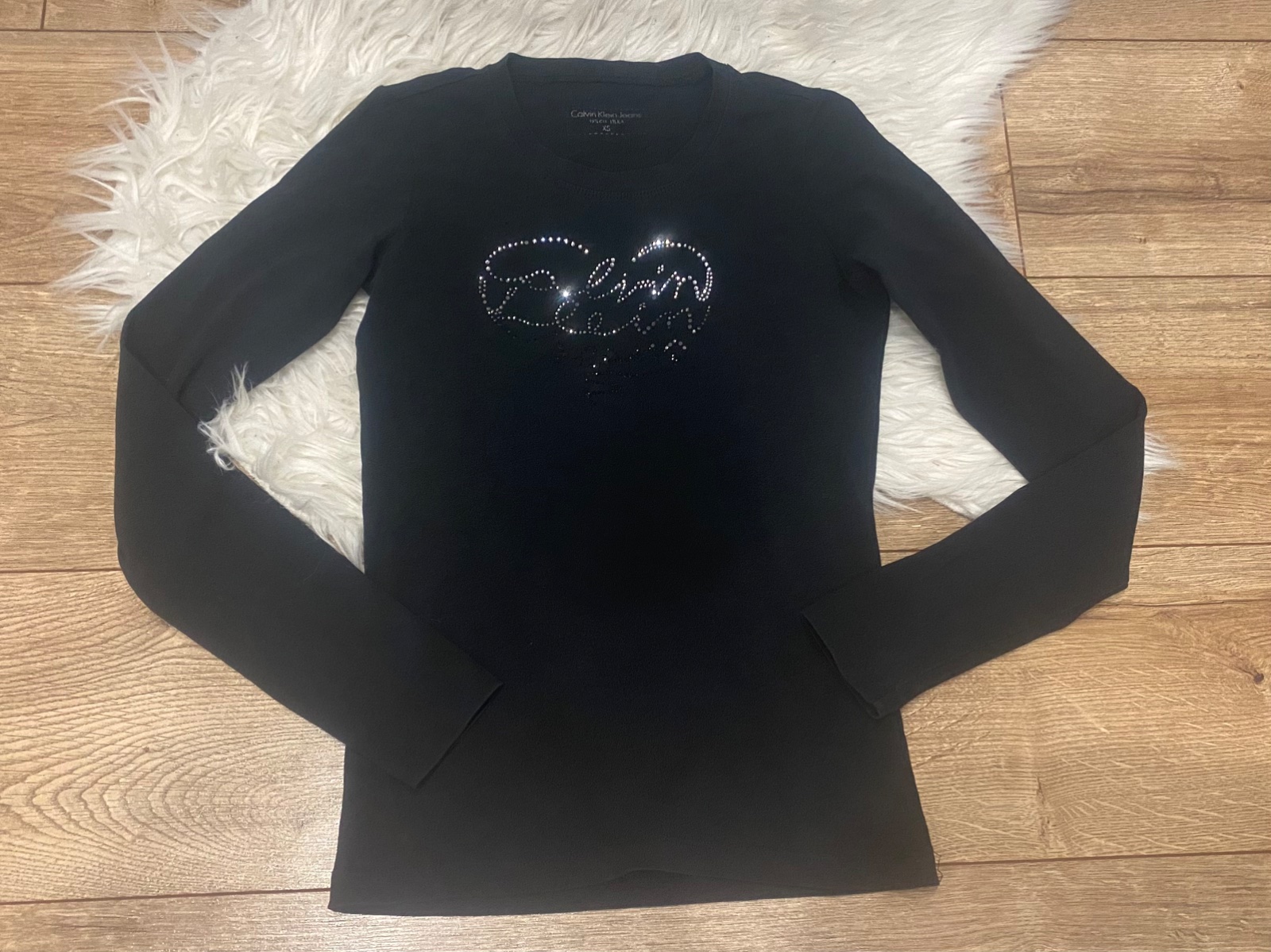 Top s dlhym rukavom CK,Nosené,stále oekné,zopar kamienkov vypadlo,veľkosť XS.Cena 8€+pošta