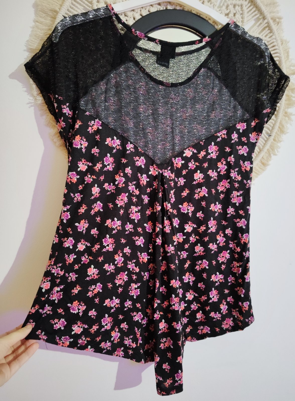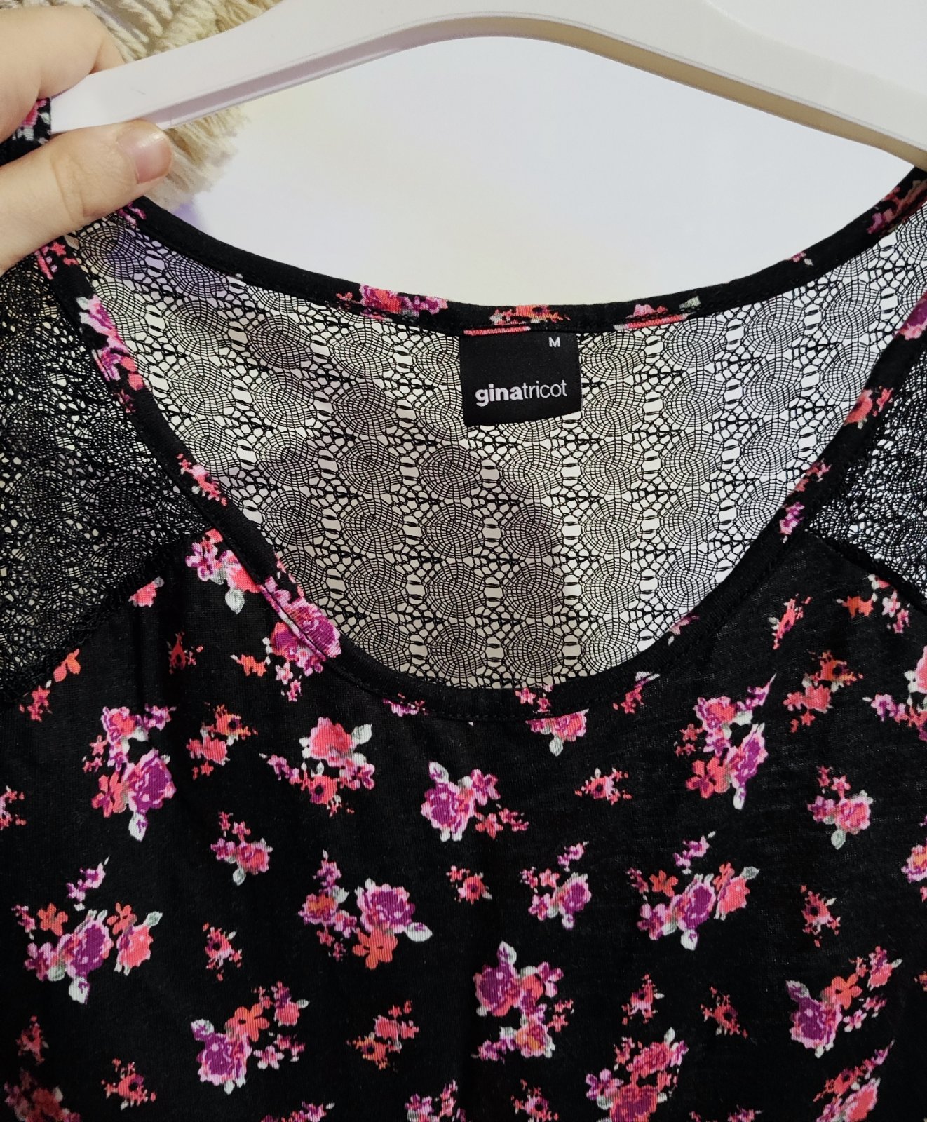 Nádherné tričko, jedno z najkrajších, aké som kedy mala, no žiaľ mne je veľmi široké. Má veľmi pekne riešené plecia a vrch chrbta (akoby krajka), krásne to ukaže. Posnažím sa doplniť fotky na posta...
