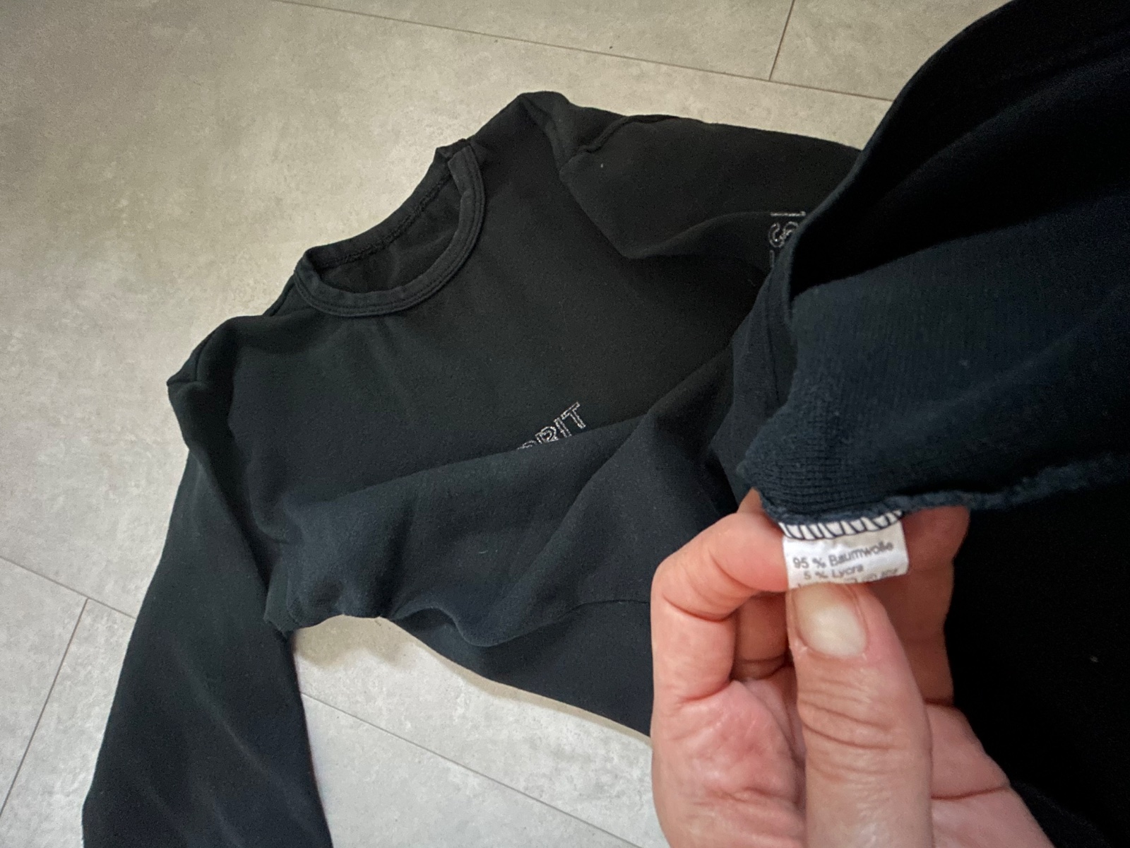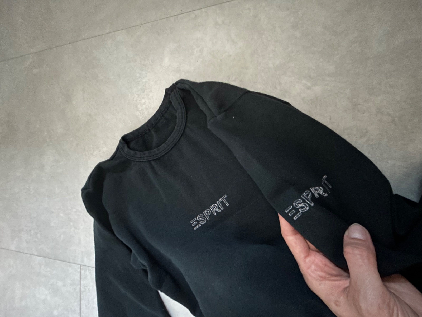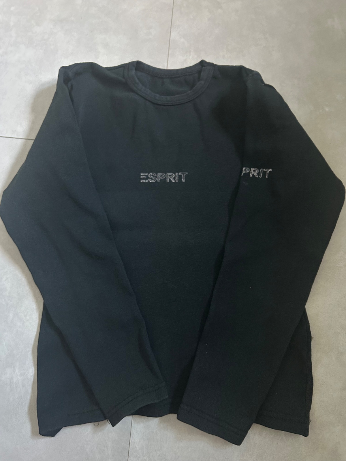 Tricko s dlhym rukavom Esprit. Je nosene, ale je to pekna cierna farba. Vintage. Napis ma jemne trblietky.