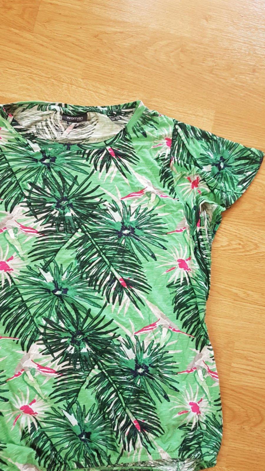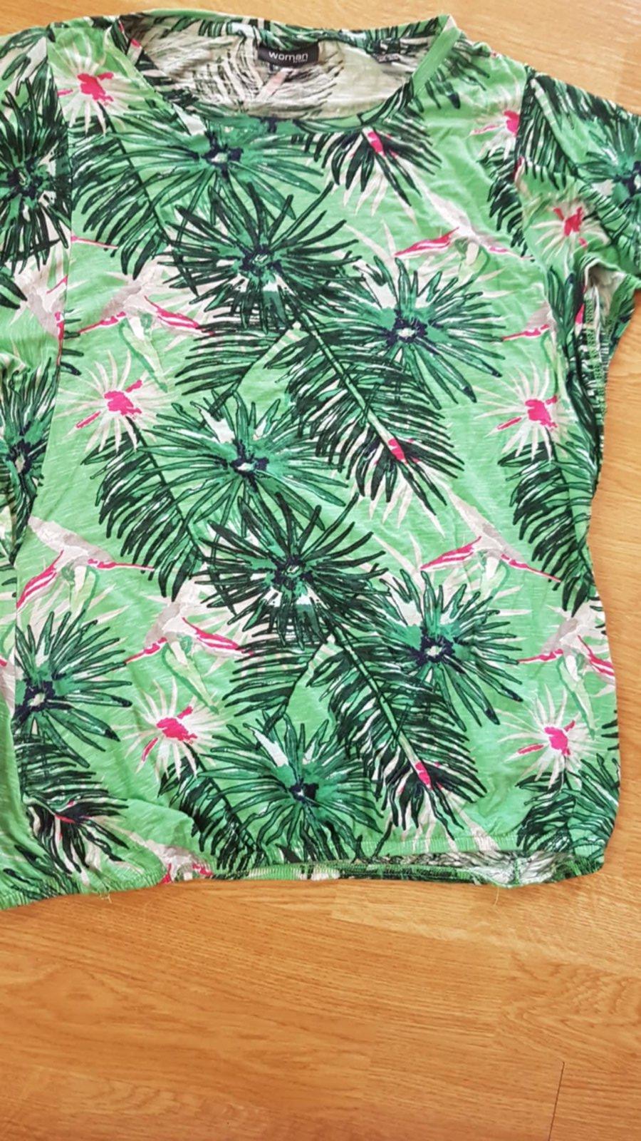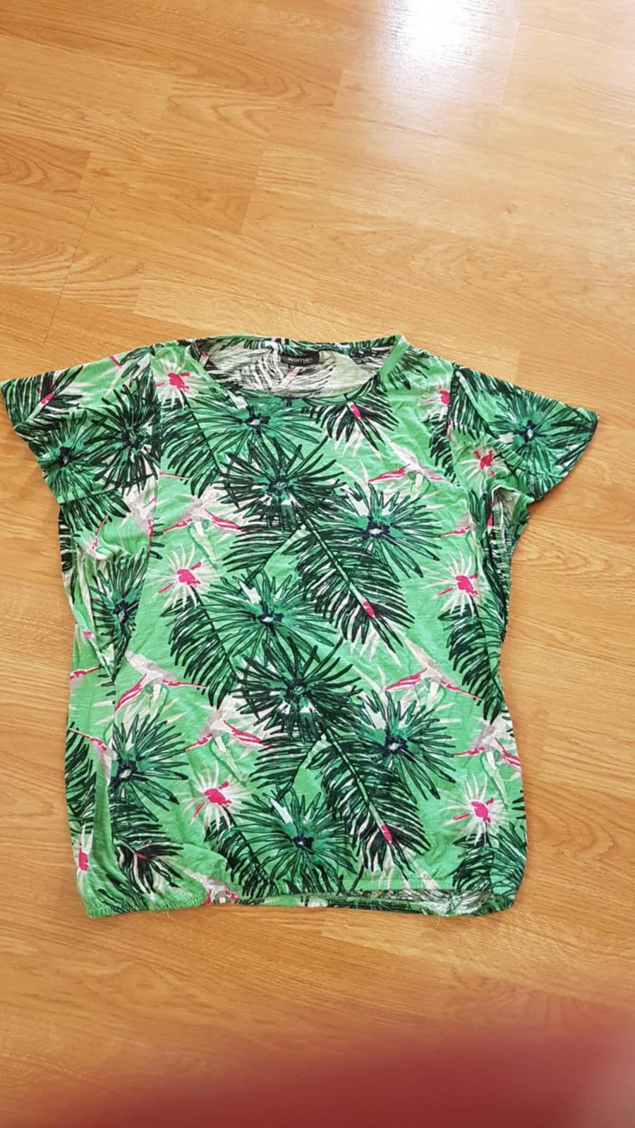 Pekné tričko vo výbornom stave, má motýlie rukávy, na spodu gumička. Šírka popod paže je 51 x 2 cm, natiahne sa aj do 61 x 2 cm, celková dĺžka je 63 cm . merala som cez stred chrbta.