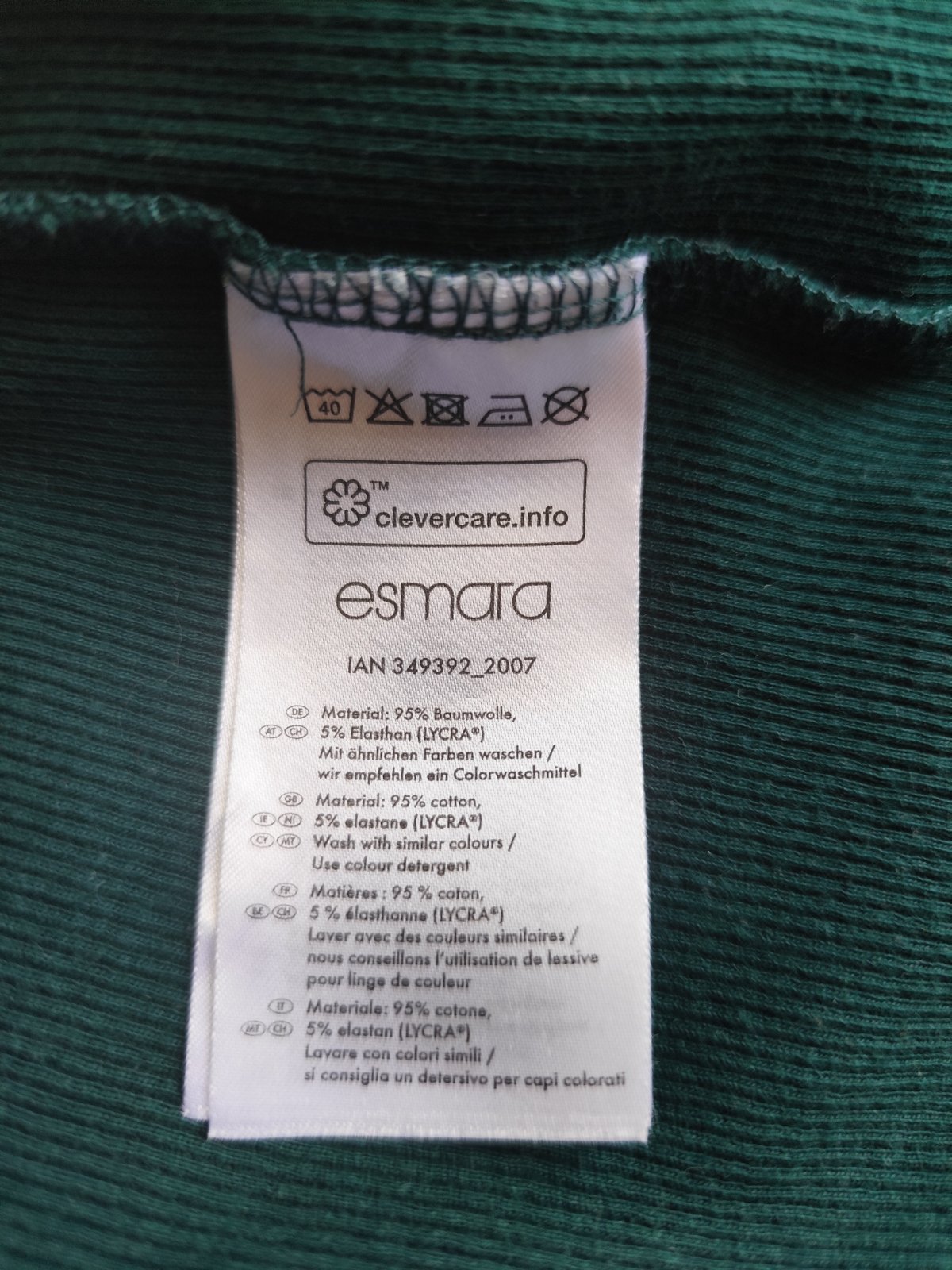 Veľmi elastické, cez prsia v kľude 2 x 37 cm (povolí o 2 x 15 cm). Dĺžka 64 cm. Zloženie 95% bavlna + 5% elastan. Veľmi dobrý stav