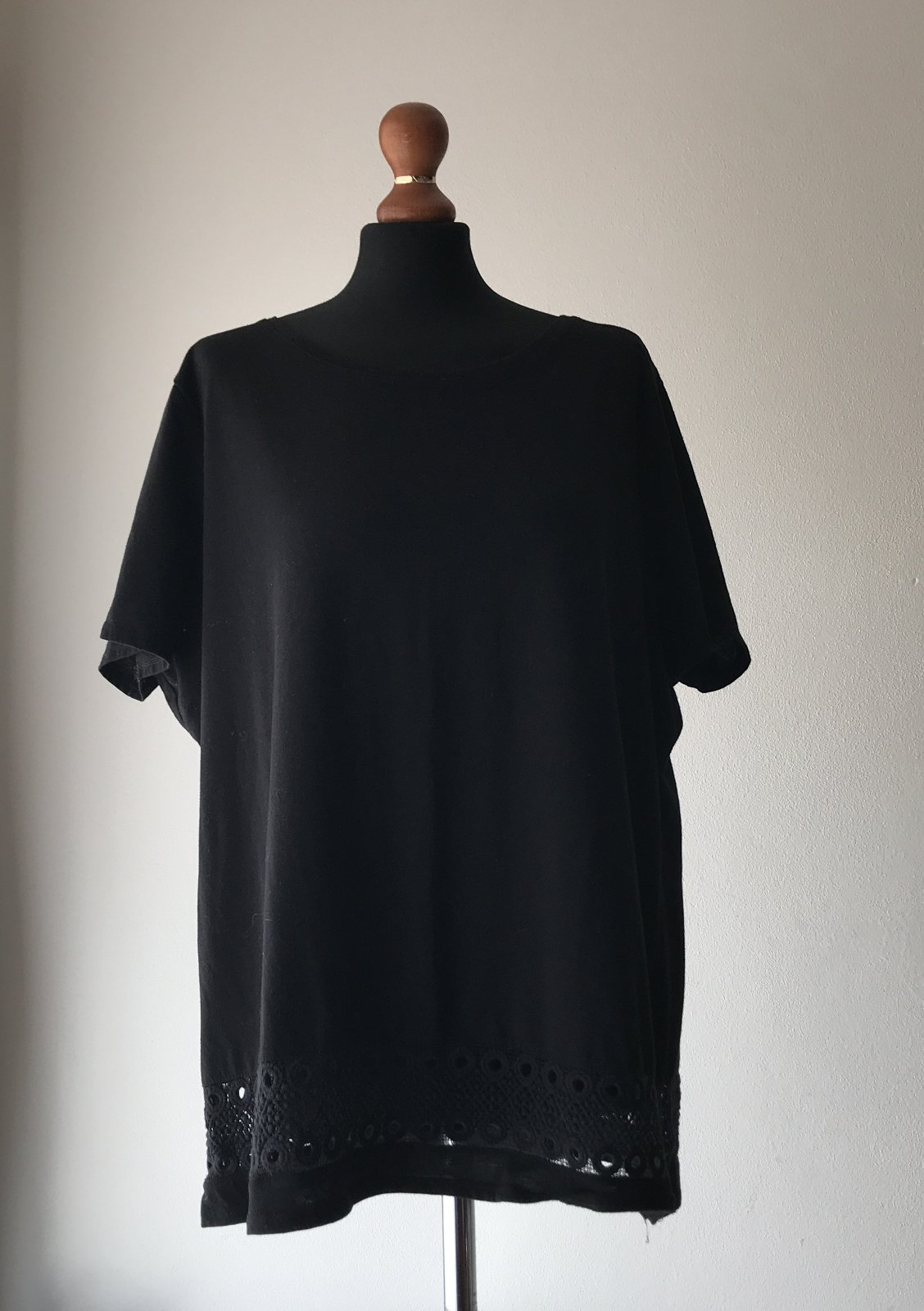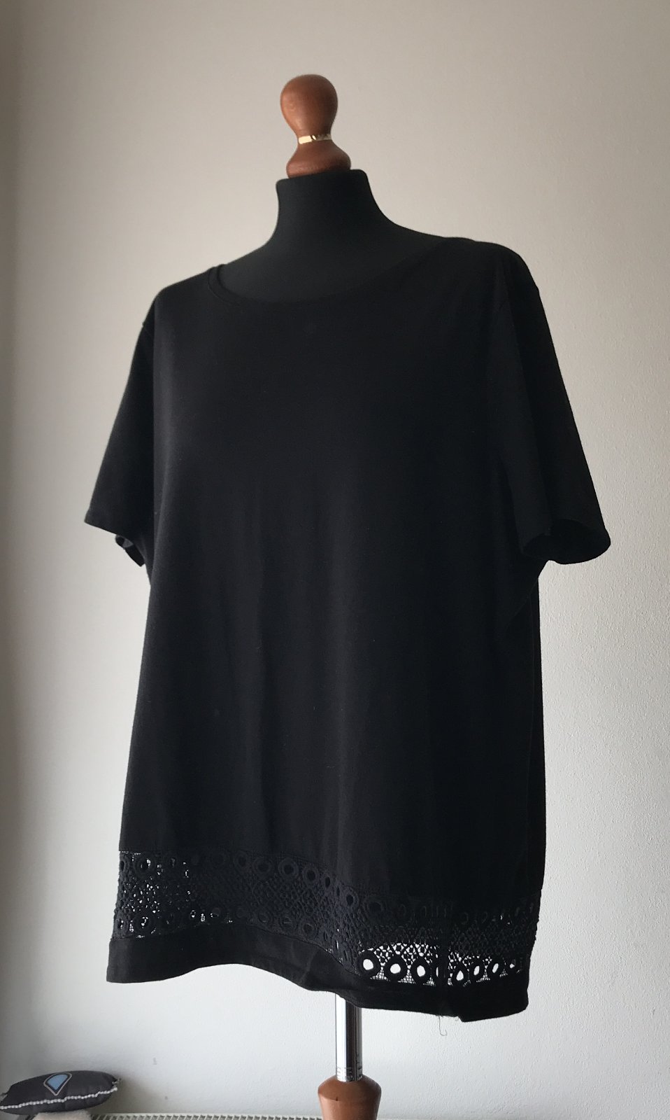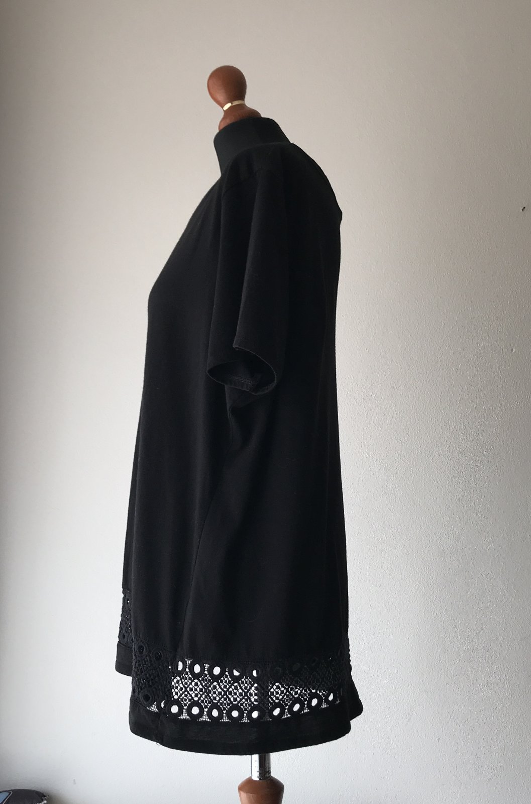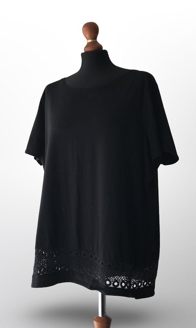 Elegantné čierne tričko s čipkovaným lemom
