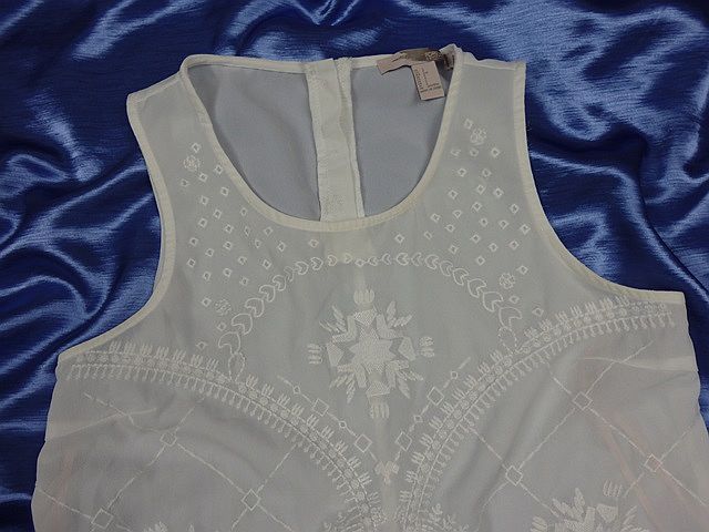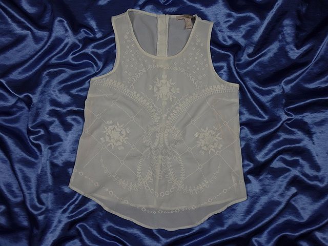 Kvalitný maslový top s výšivkou, vzadu zapínanie na gombíky, materiál 100% polyester, super stav .
