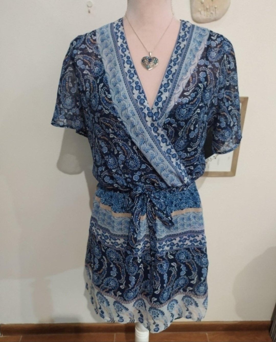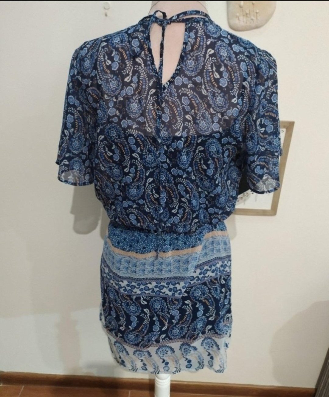 Na zadnej strane cipka, vystrih nastavitelny, dlzka cca 59 cm, sirka pod pazuchami 41 cm, rukav 54 cm