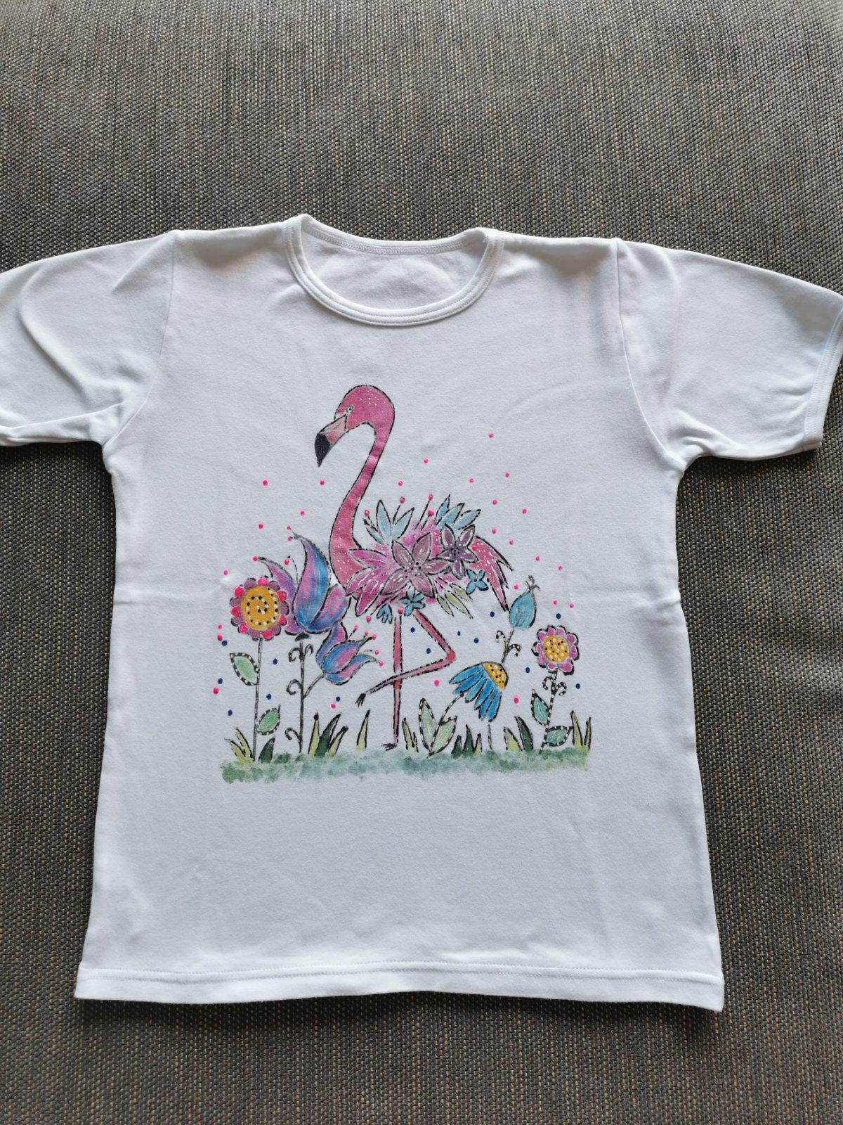 Tričko s plameniakom - maľované