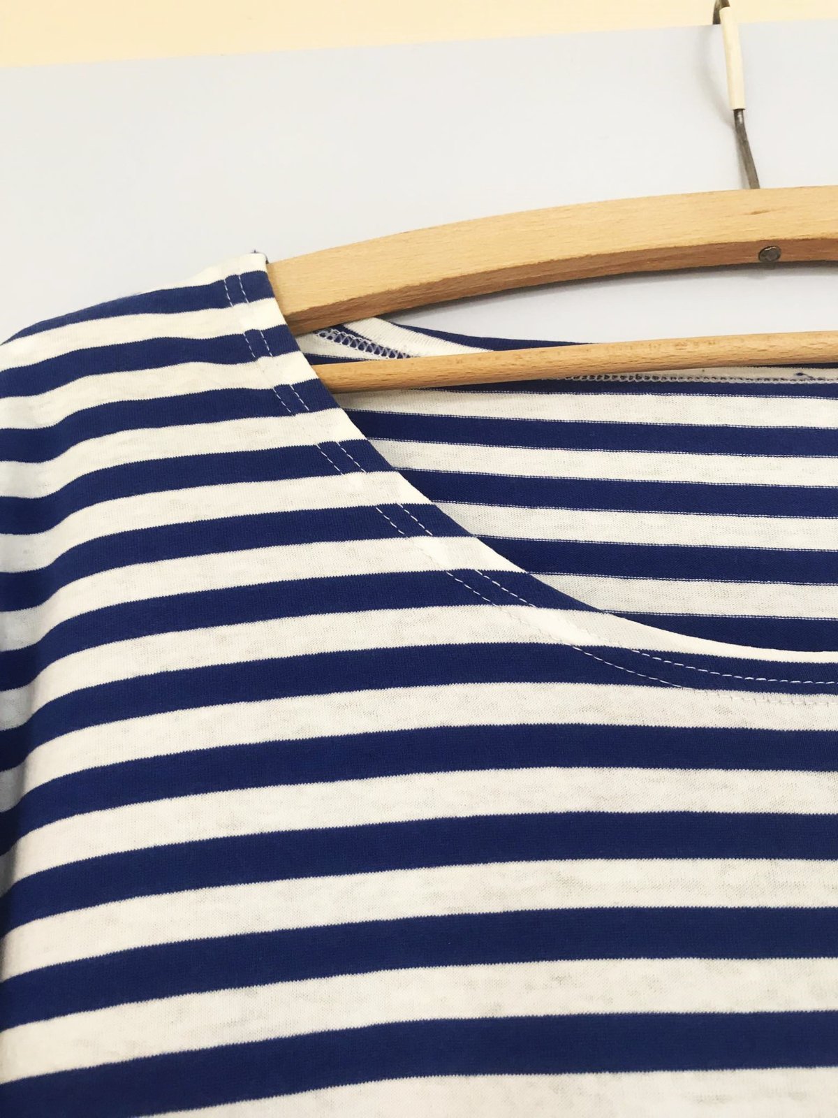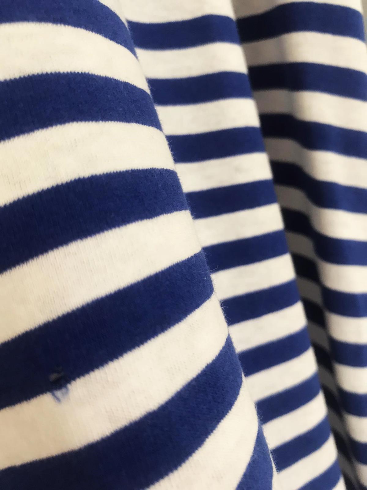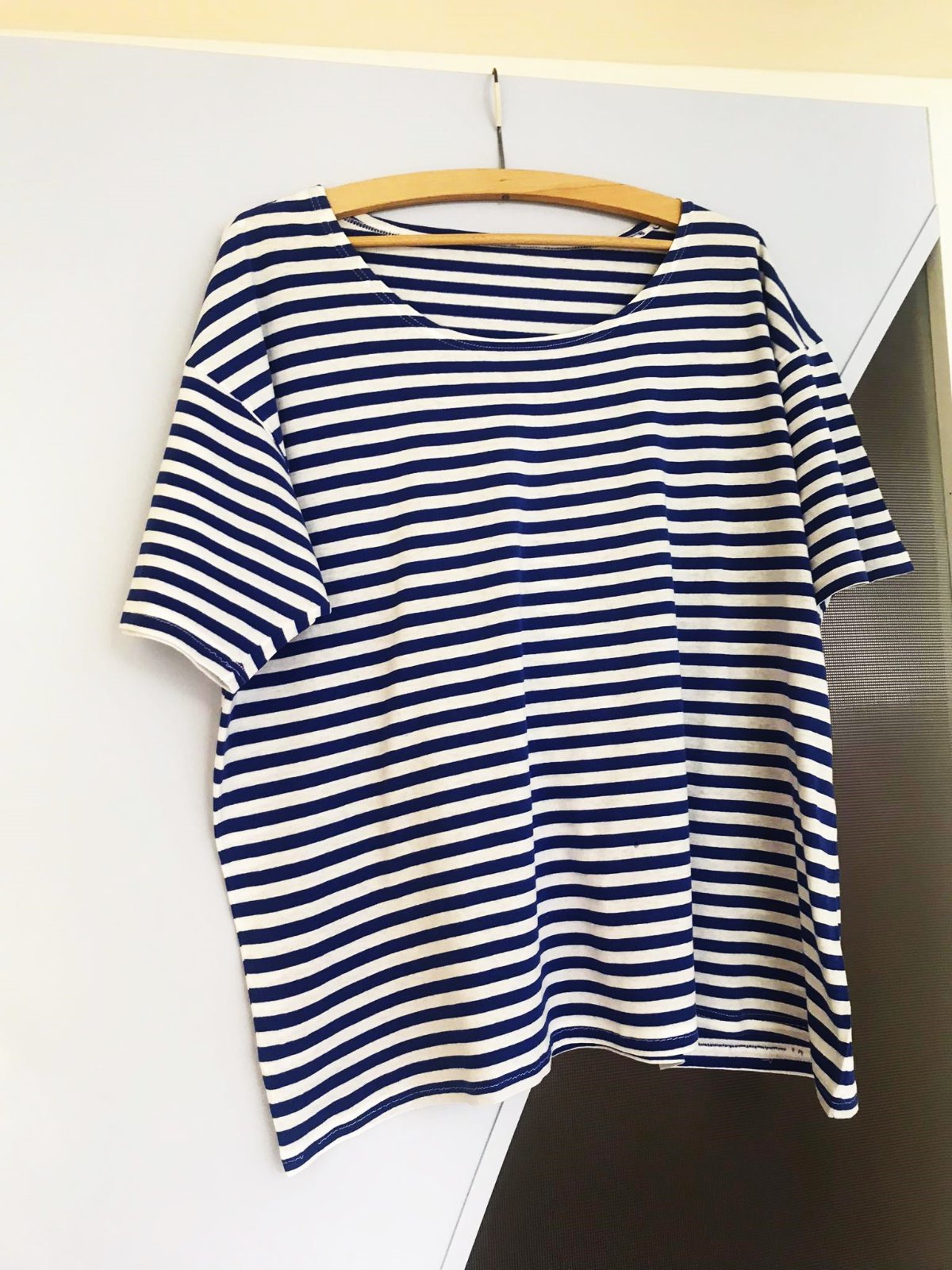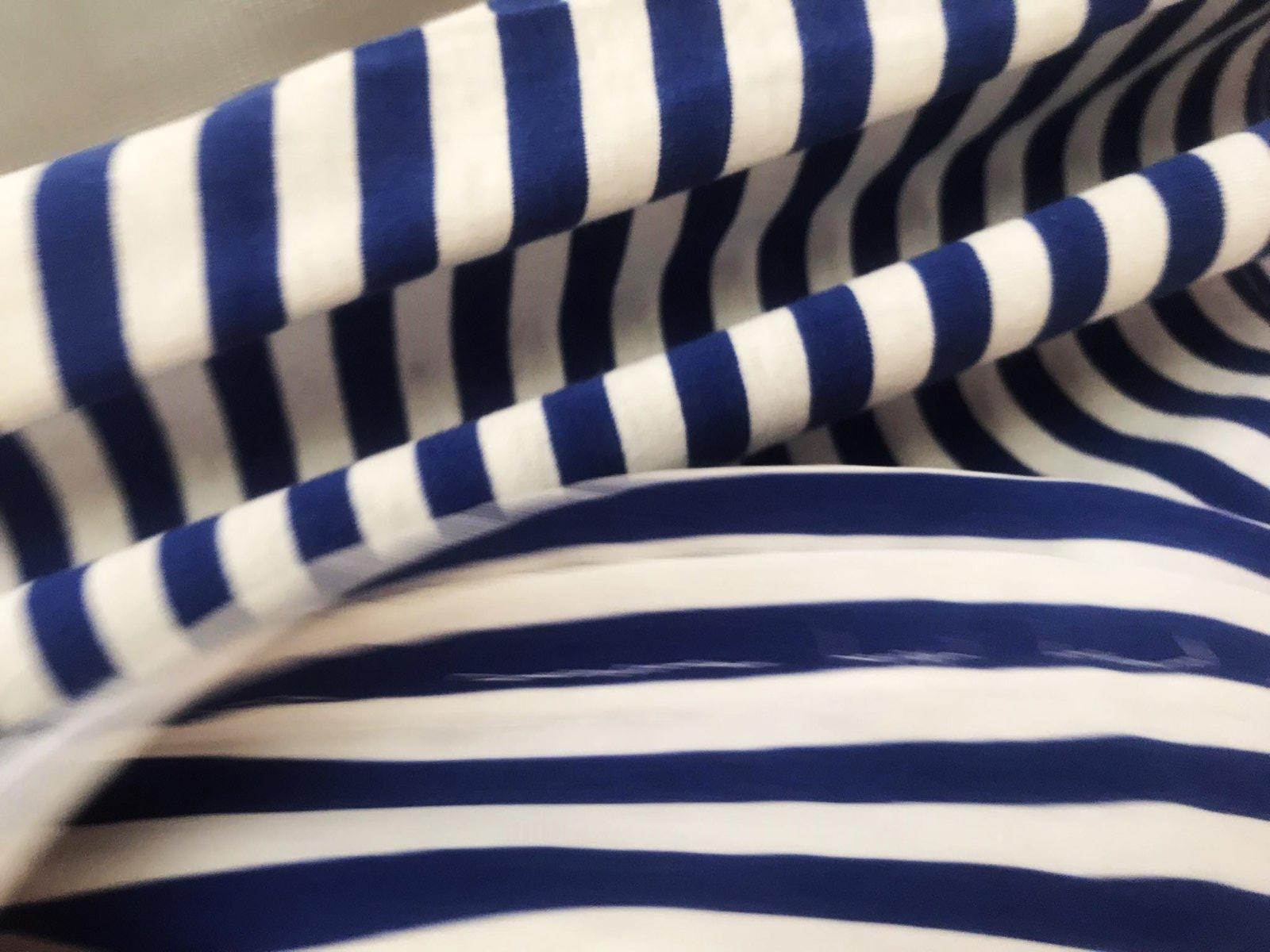 prúžkované námornícke bavlnené voľné tričko oversize, šírka = 63 x 2 cm,dlžka = 68 cm, je na ňom jemne pustené očko - nie je to veľmi vidno - je to nafotené,pozri aj :