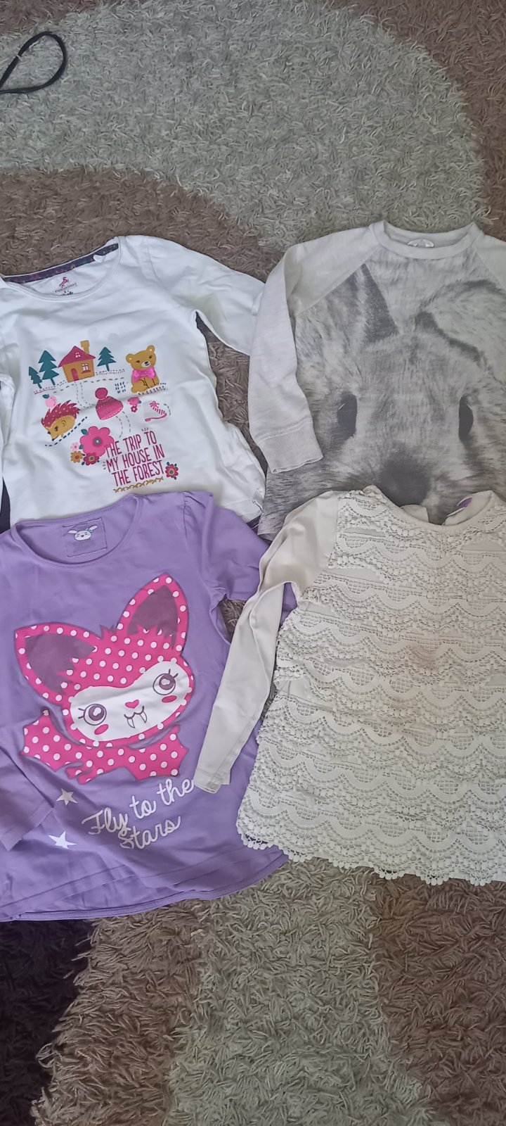 Biele obrázkové 2,5€, zajkova mikina 2€, ostatne 1€