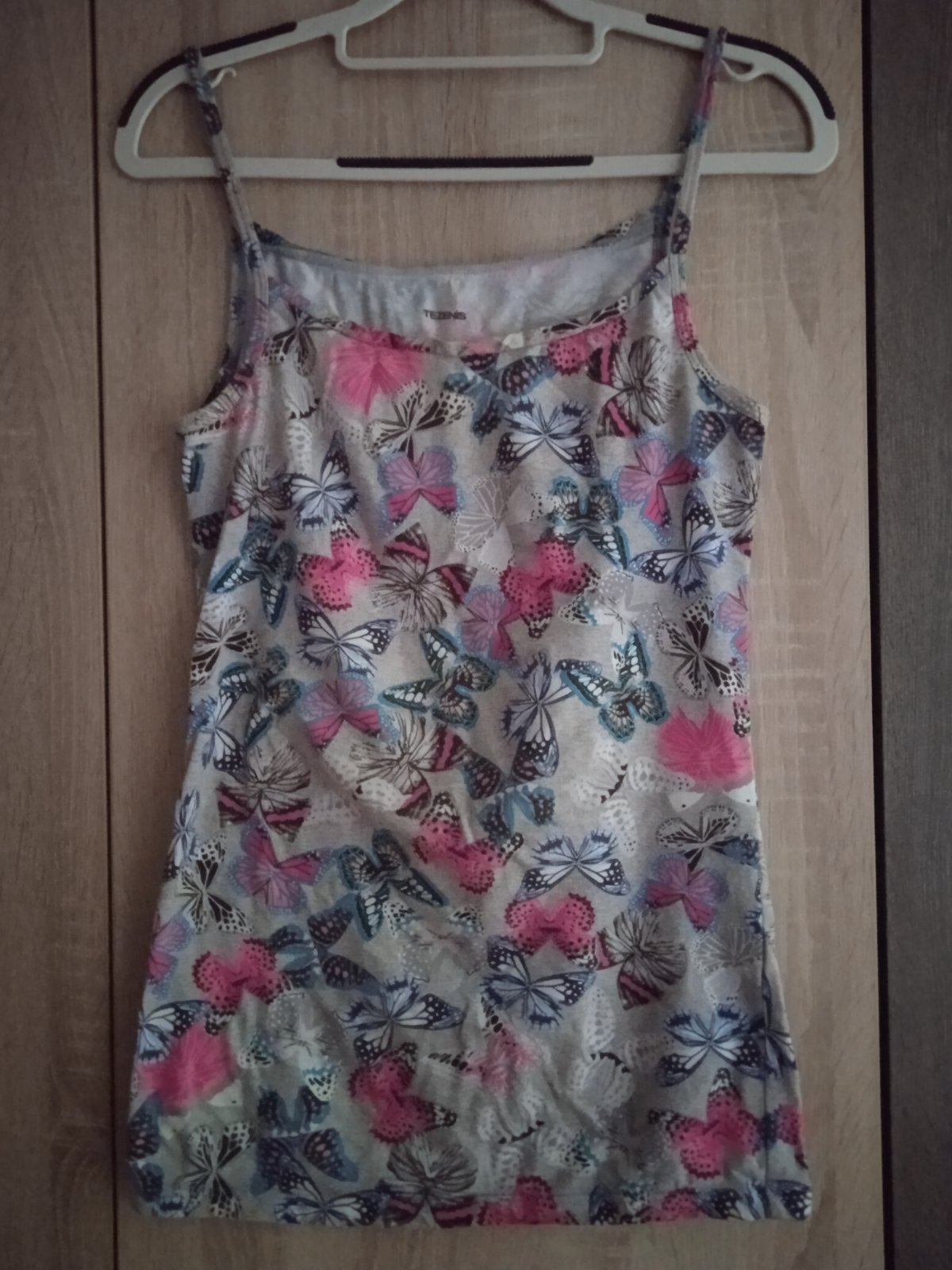 Krásne tielko na leto, vzadu na vrchnej časti čipka .Top stav.Stitok som odstrihla ale sedí na veľkosť S....pri záujme premeriam.