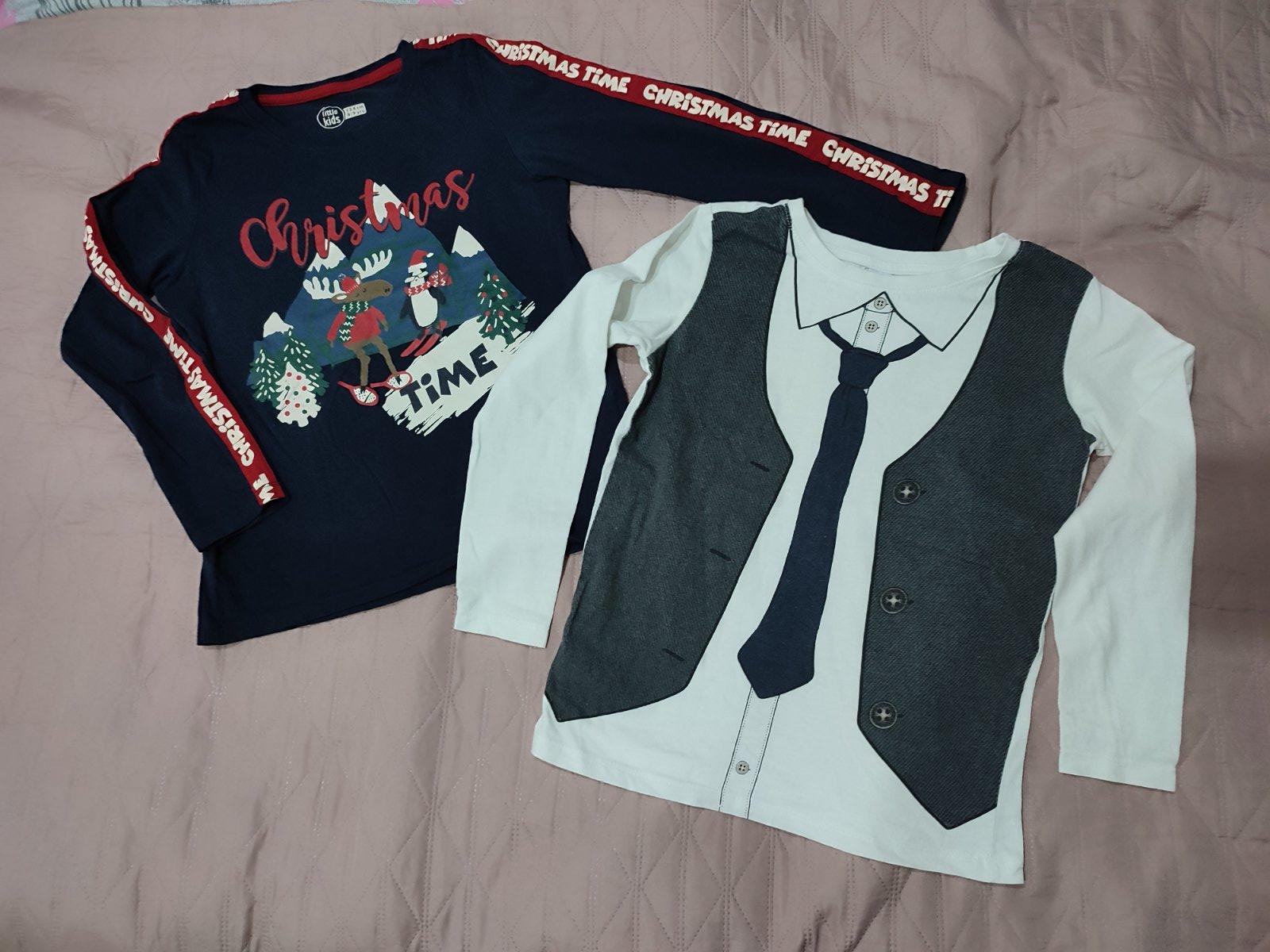 Predám pár krát oblečené tričká,vestička je trochu bledšia ako na foto. Vianočné uvádzajú veľkosť 134.