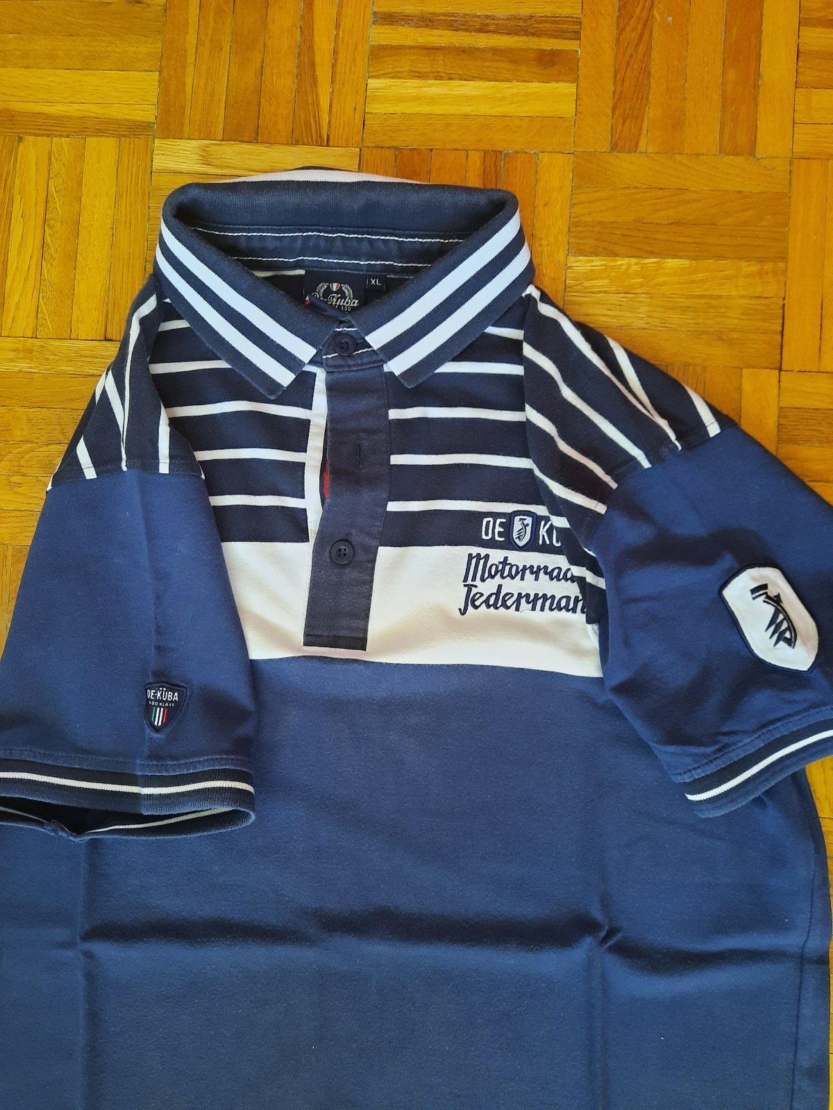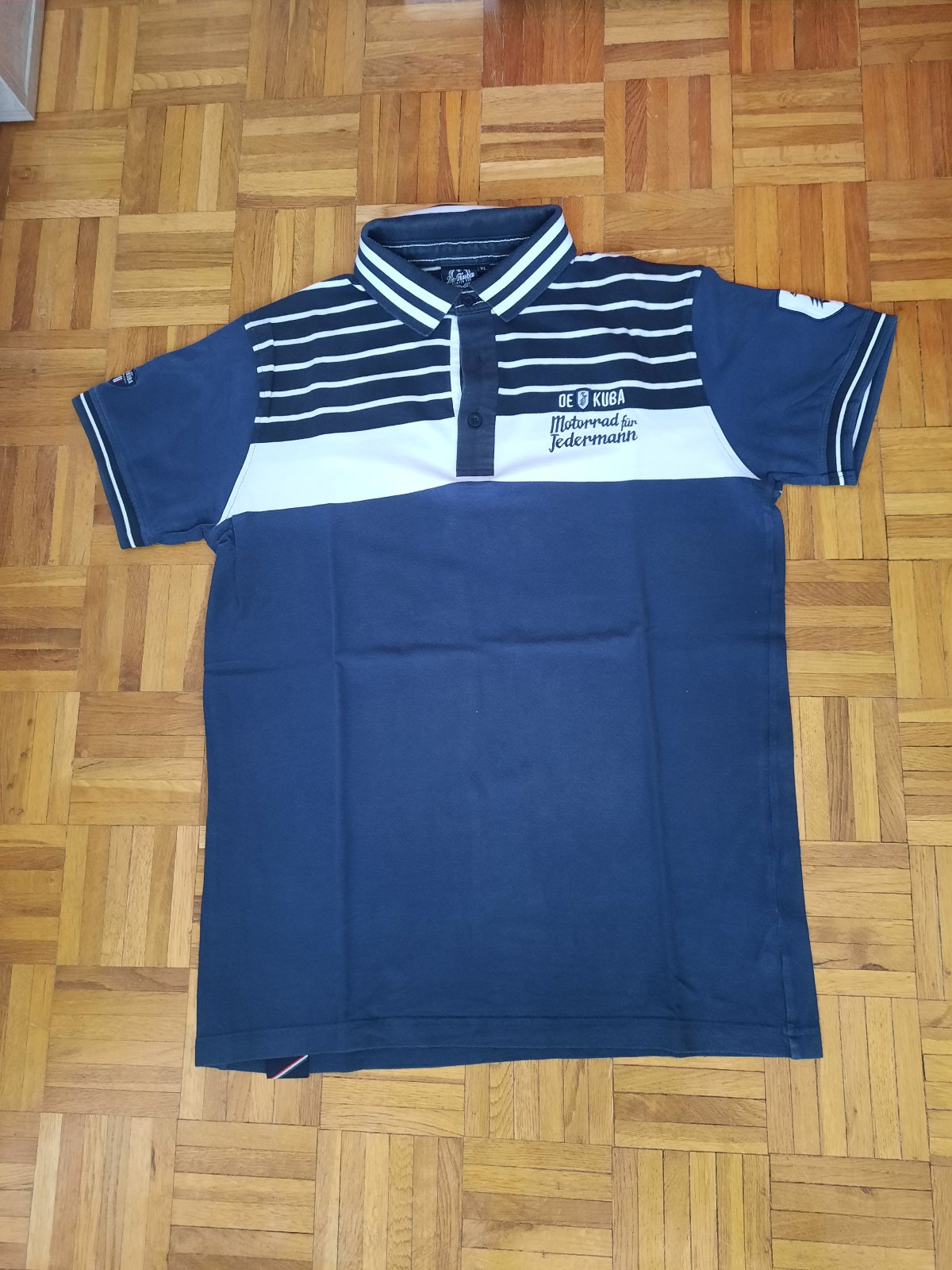 nosené tmavomodré tričko Urban Spirit so sivým olemovaním okolo krku veľkosť na tričko je uvedená ako X-large ďĺžka 67 cm šírka 54 cm cena je uvedená bez poštovného