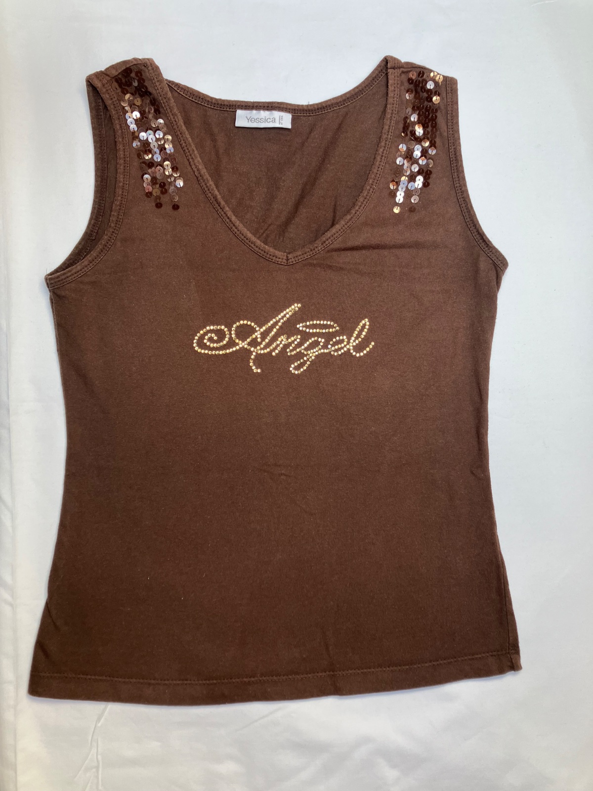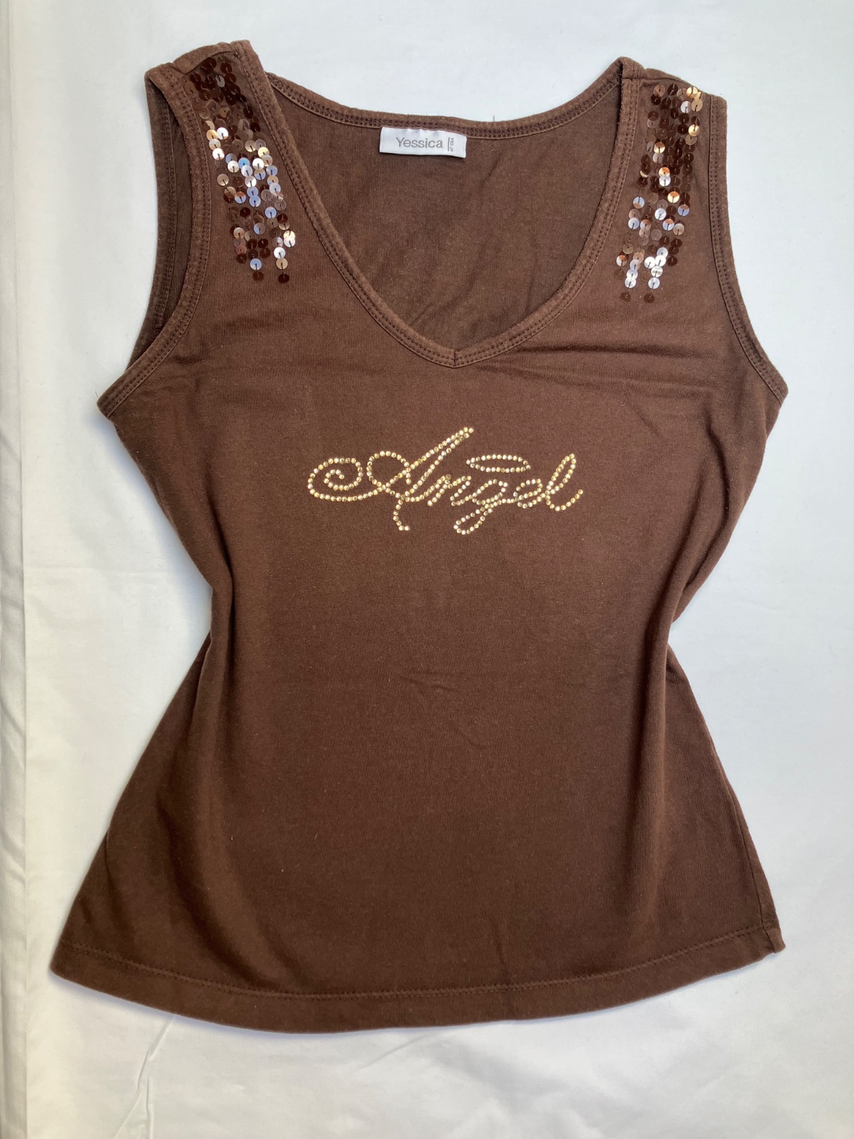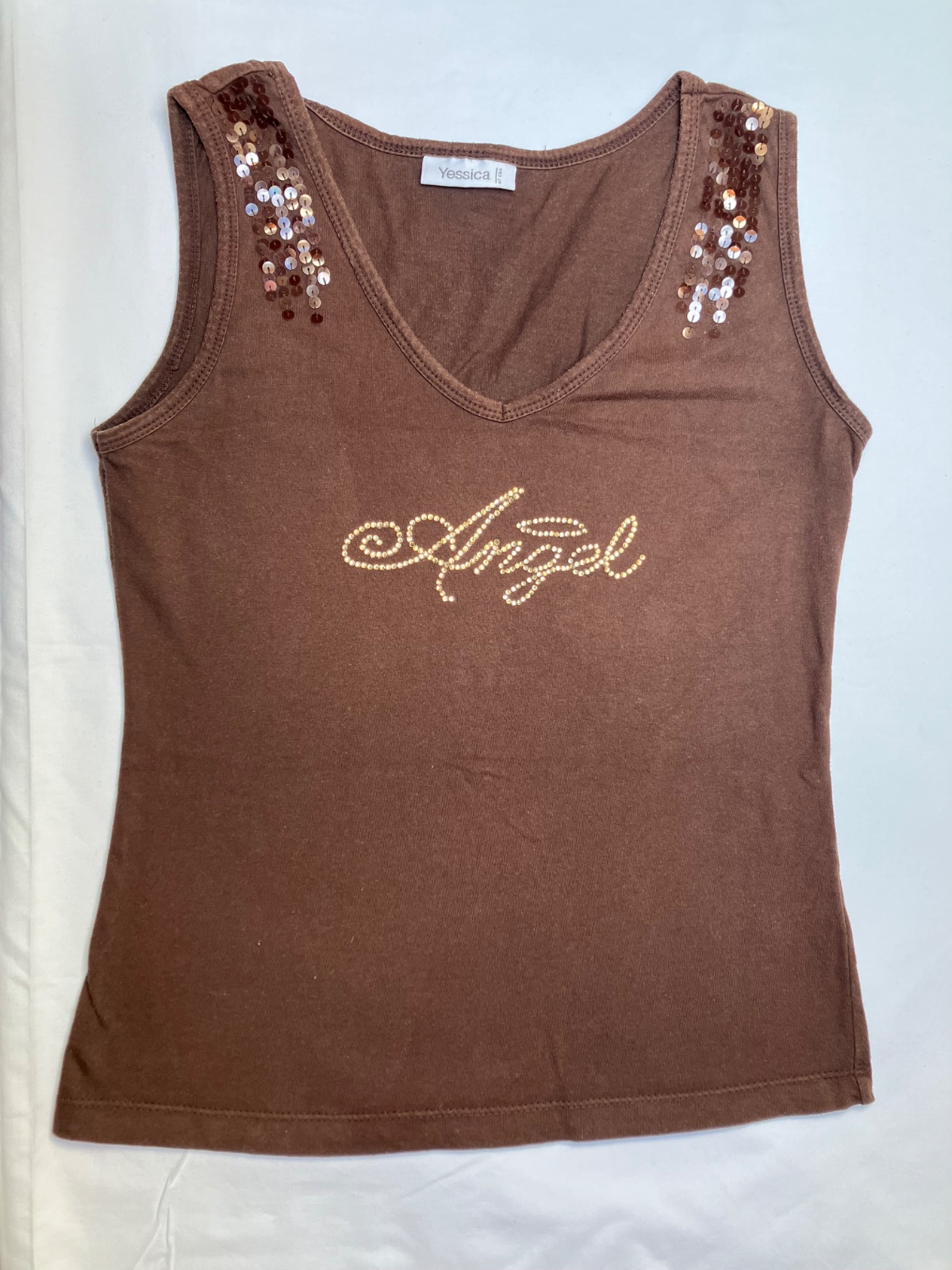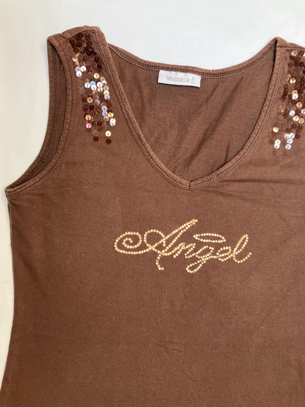 Unikátne Y2K tielko s ručne kamienkovaným nápisom Angel ✨ Tento kúsok je handmade/upcycled – vlastnoručne zdobený, takže je úplne jedinečný a nikto iný ho nebude mať 💫