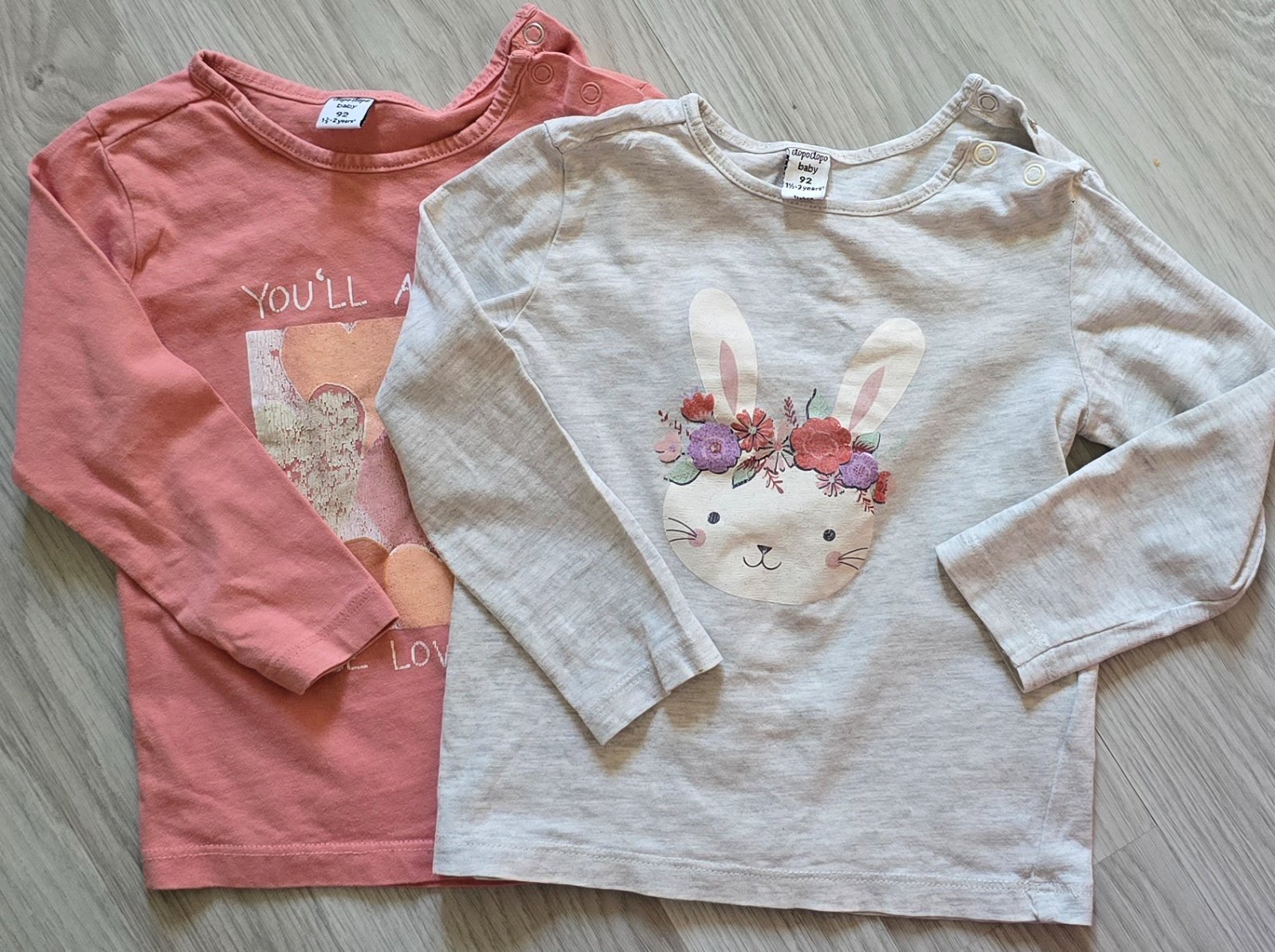 Ponúkam 2 ks trička dlhý rukáv.Obrazky miznú.Prikladam foto.Sive teosku špinavé nad zajacom