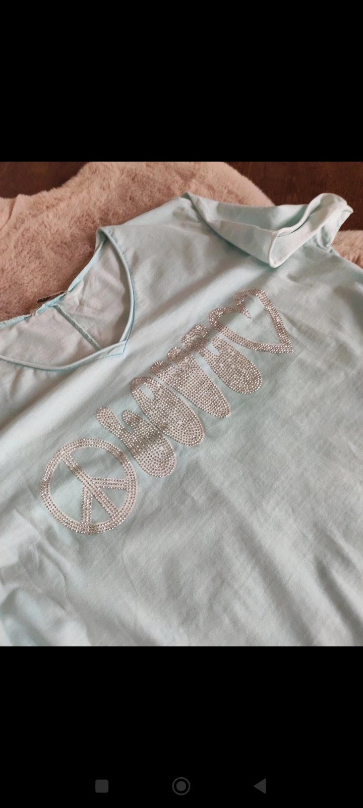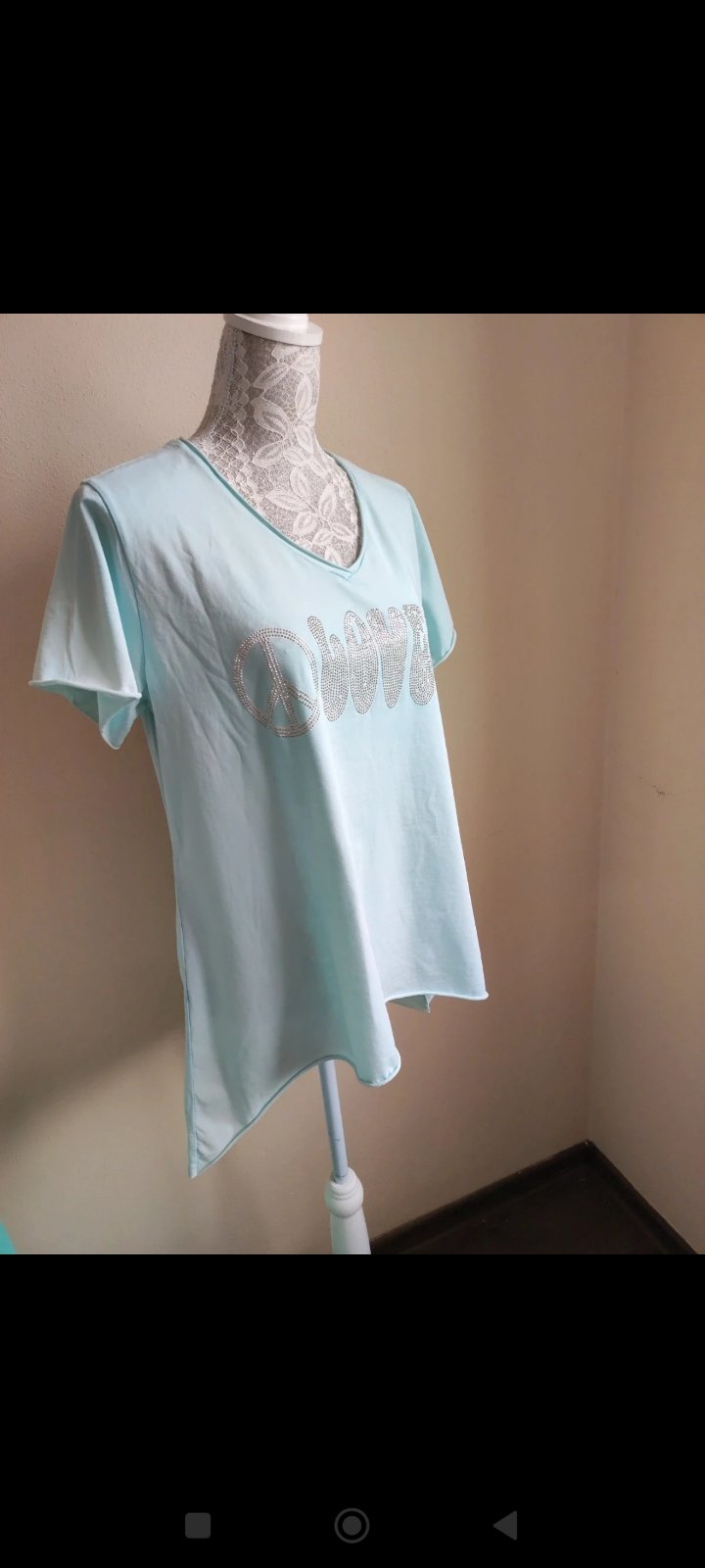 Perfektné hrubšie bavlnené tričko s efektom dier, bez visačky! Dĺžka - 66/73 cm, šírka - 2x 55 cm.