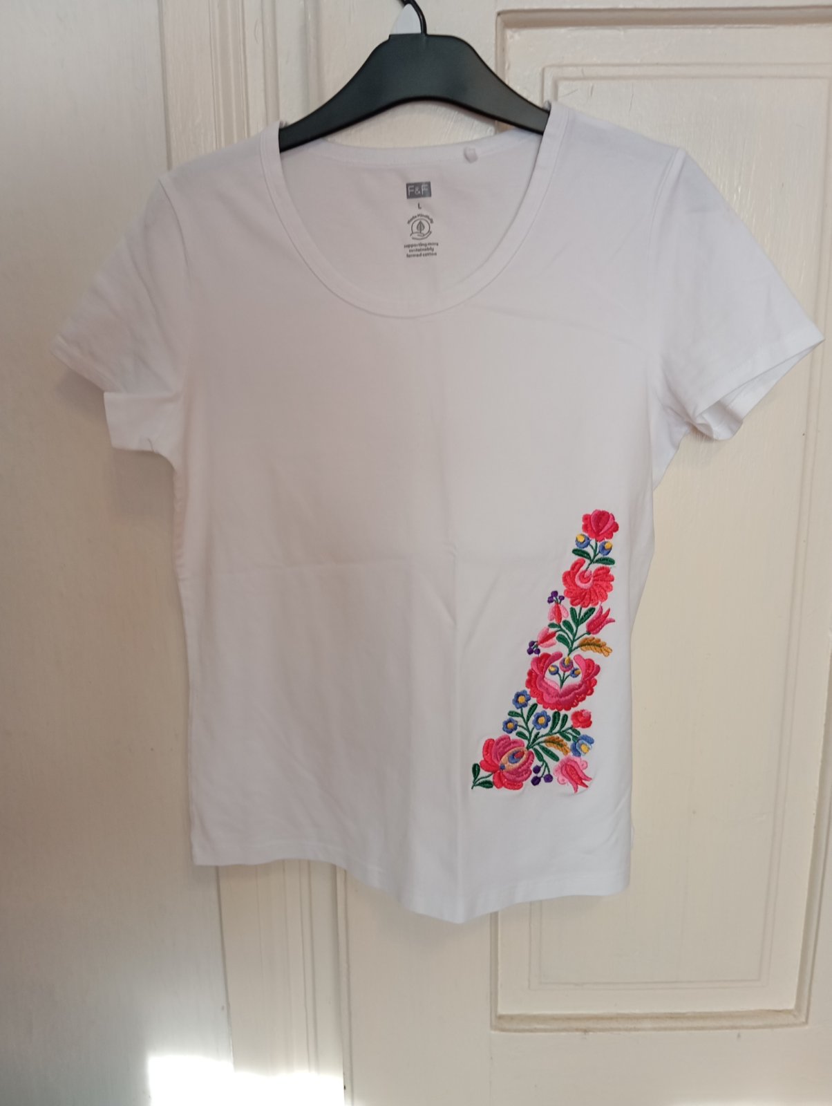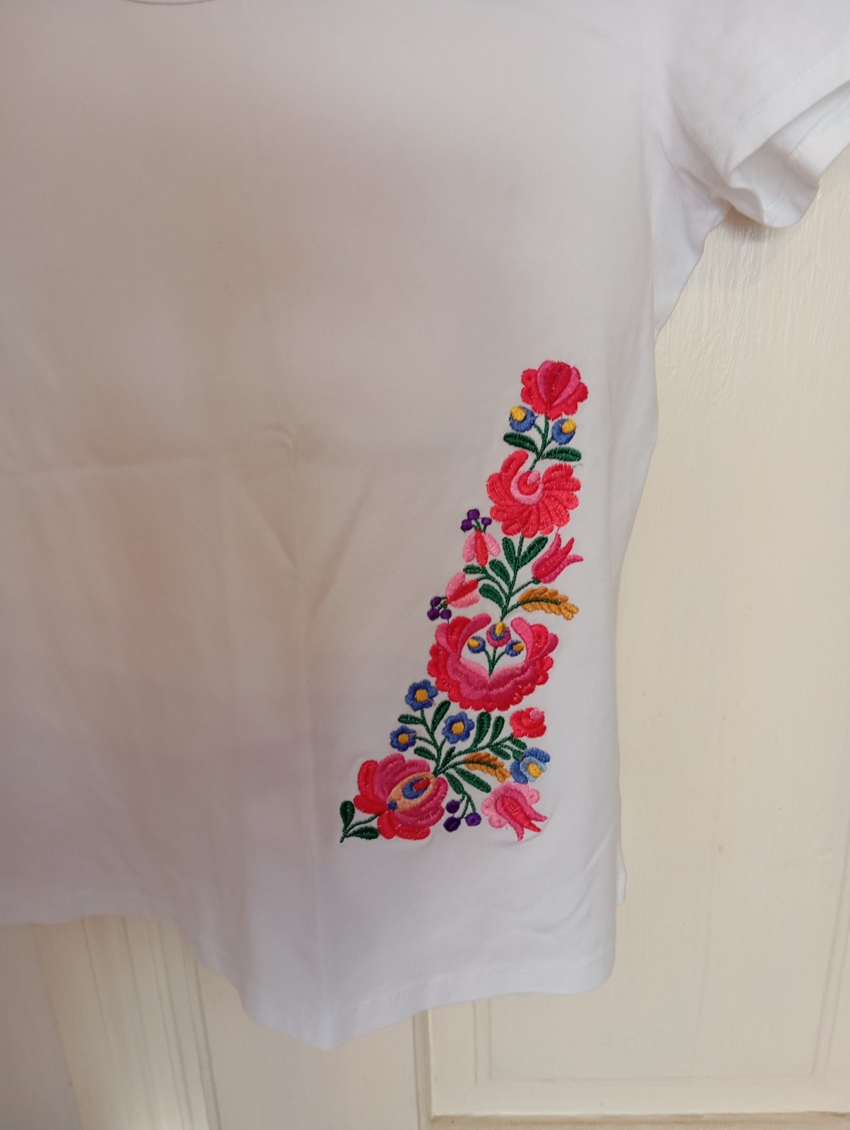 Nenosené biele tričko s ludovým motývom