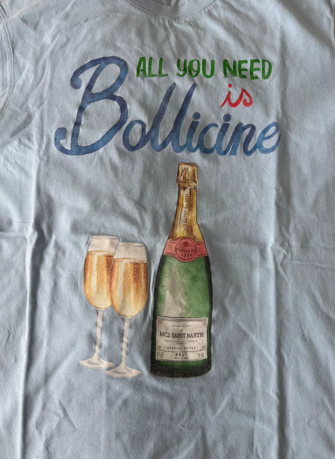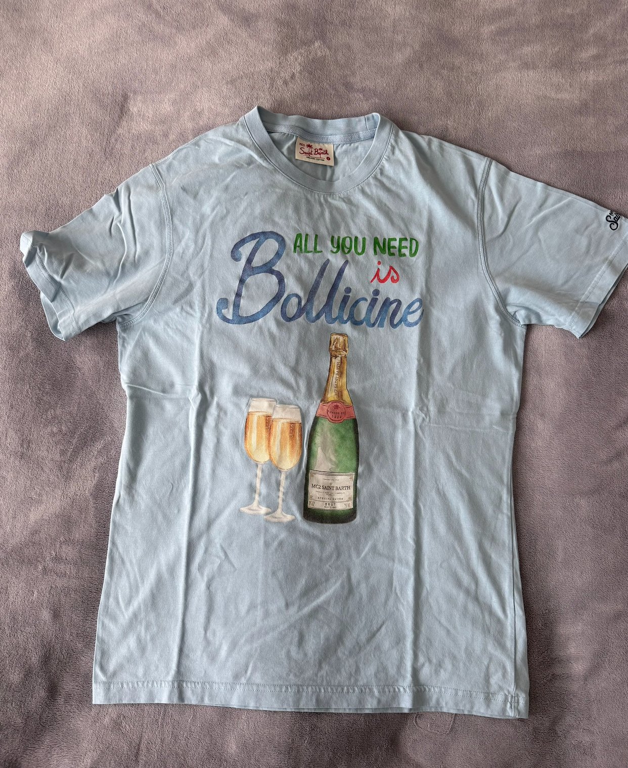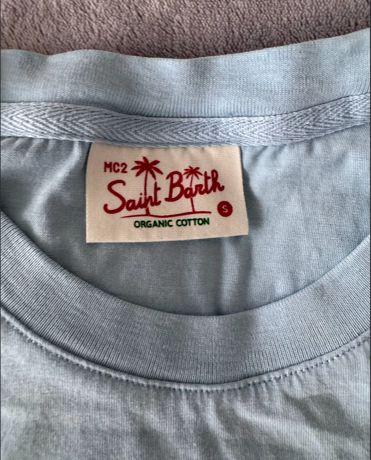 Bledomodré tričko s potlačou cez prsia. Super kvalitka. Značkové. ZNAČKA: GLORIA VANDERBILD