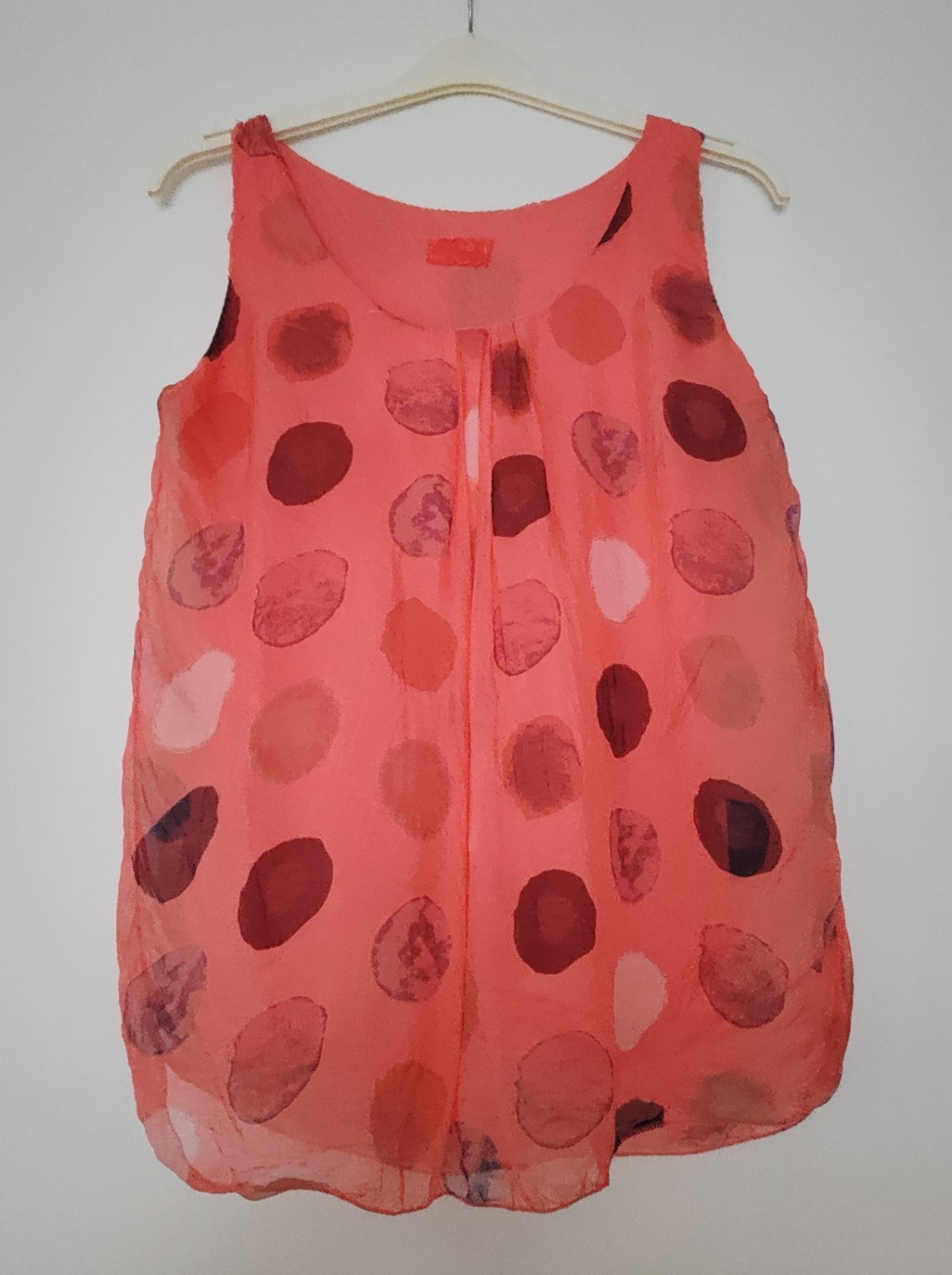 Lahke tielko - bluzka bez rukavou, padavy neelasticky material, nieco ako sifon, jemne nariasenia, dlzka 65 cm, sirka prsia 48cm.