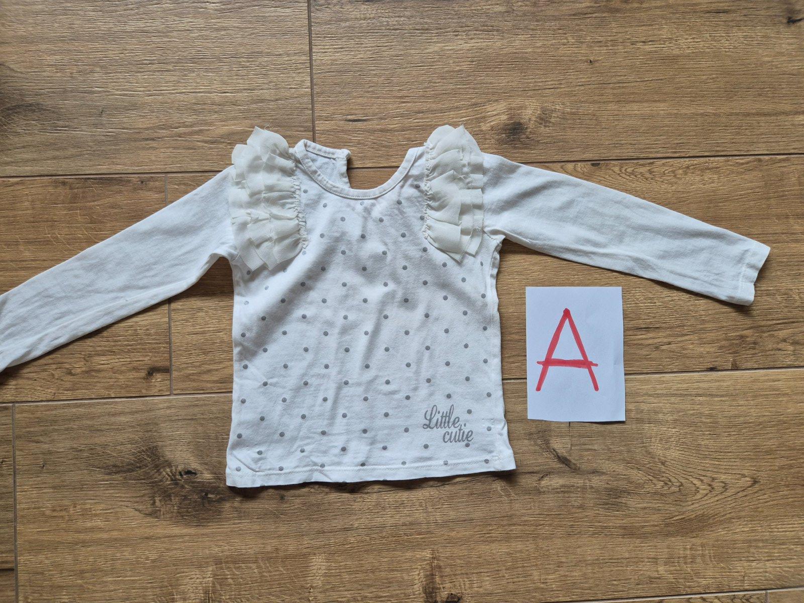 Predám biely bodkovaný dlhorukávový top s obrazkom dievčenských tváričiek značky Mayoral, veľkosť: 92 (1,5 - 2 roky). Zapínanie vzadu na cvoky.