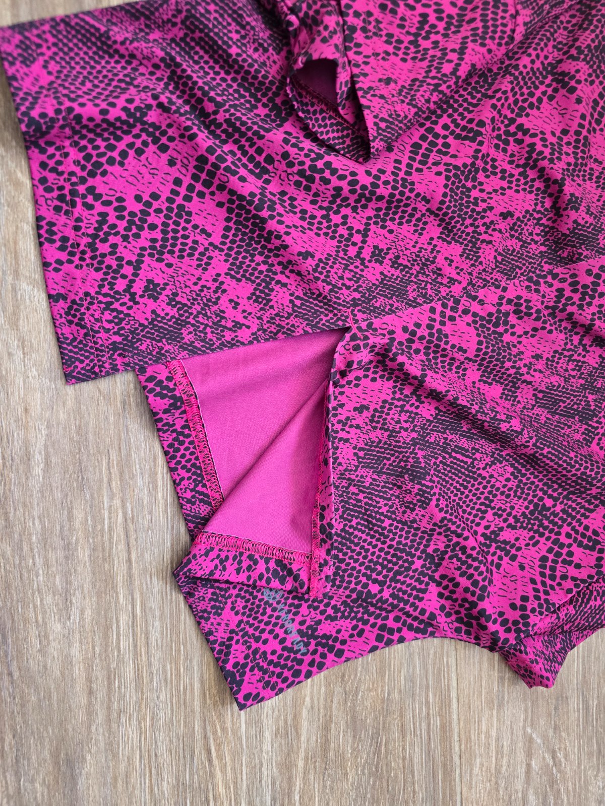 Ružové, krátko nosené tričko, samozrejme bez poškodenia, pod pazuchami bez fľakov a známok nosenia. Veľ. UK10/ S. Šírka 42cm, dĺžka 59,5cm.
