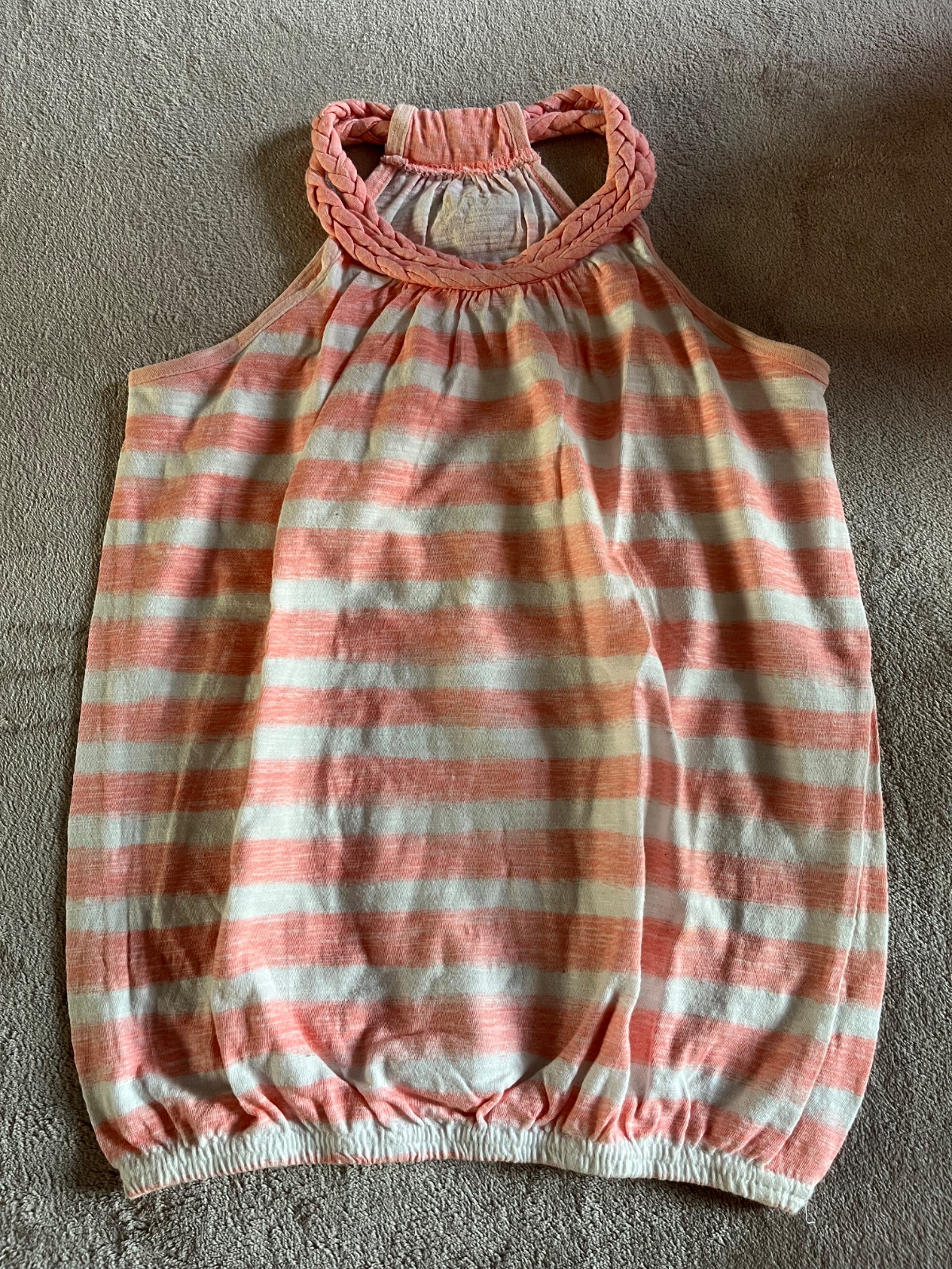 lososová farba, úzky strih, elastické materiál: bavlna rozmery: dĺžka od pleca dole 53 cm, šírka pod pazuchou 21-25 x 2 cm