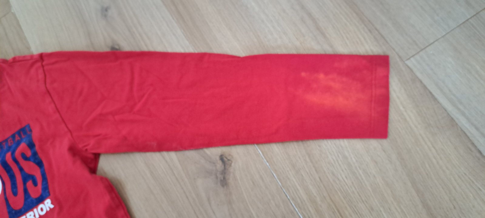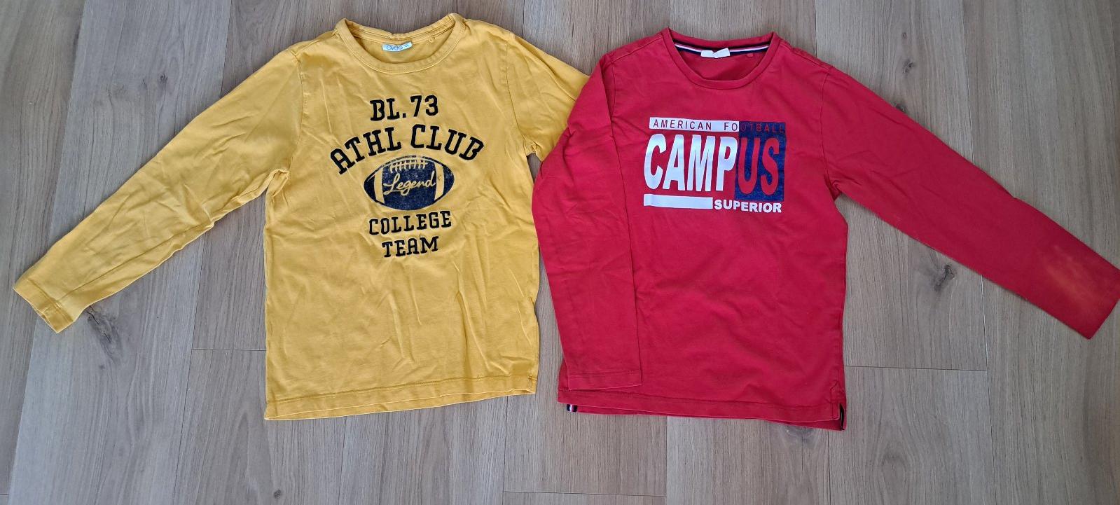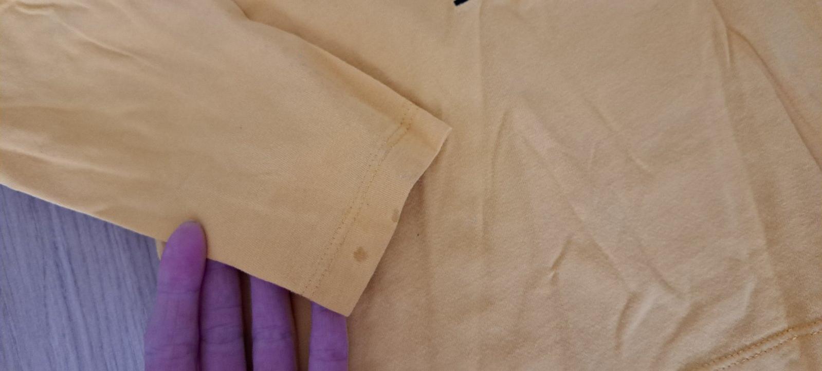 Tričká s fľakmi, na oranžovom na pravom rukáve vzadu, červené fľak na ľavom rukáve.Obe tričká darujem,