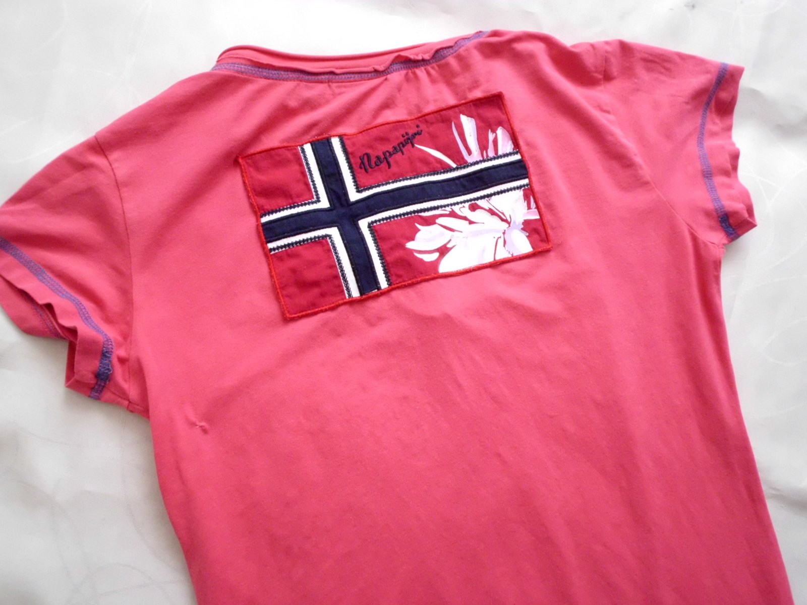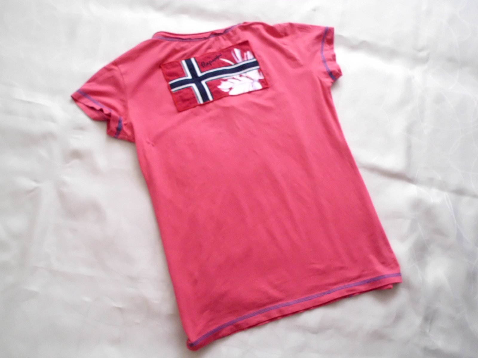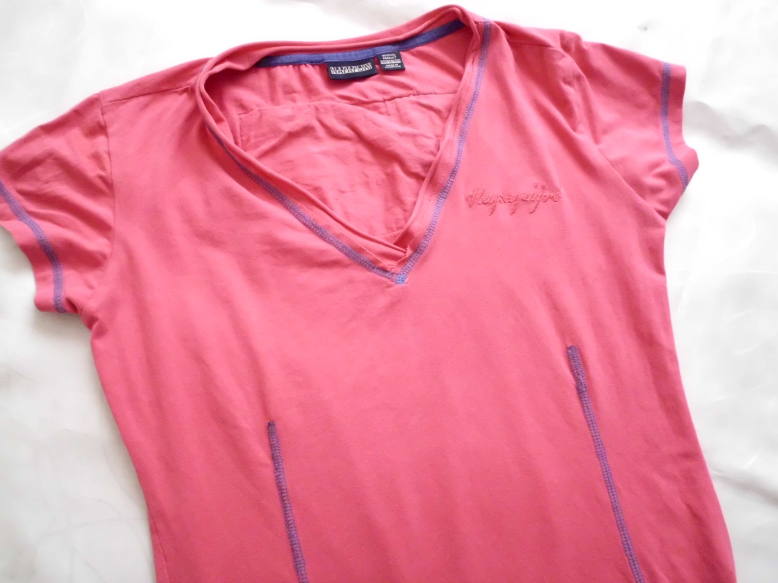 Predám dámske tričko Napapijri vel. M , šírka 48 cm, dlžka 62 cm, rukáv 11 cm, tmavoružová farba, tenšie pružné pekne sa prispôsobí, vzadu vlavo zašitá malinká dierka pod rukávom pri nosení nie je vidno, inak super stav