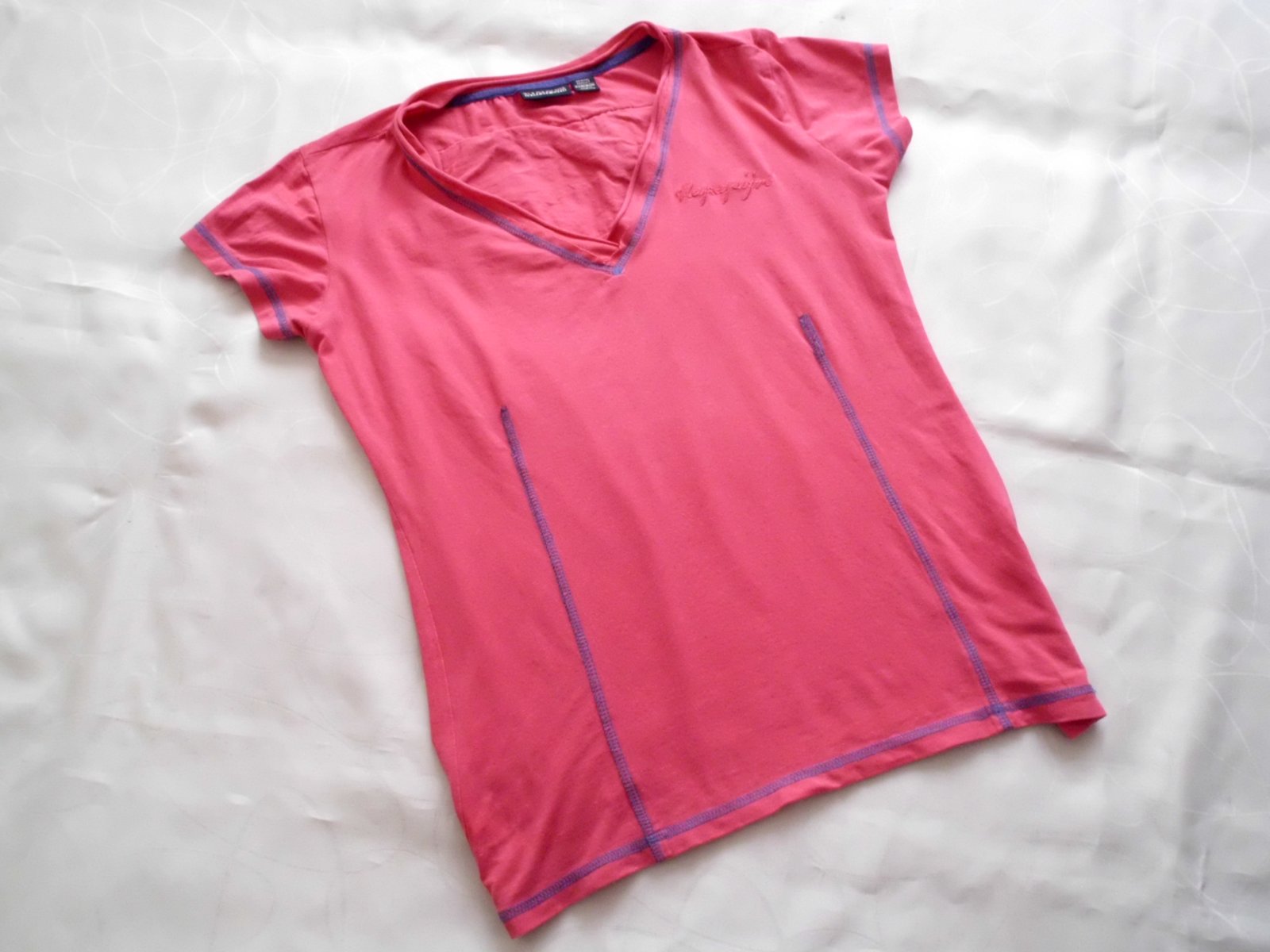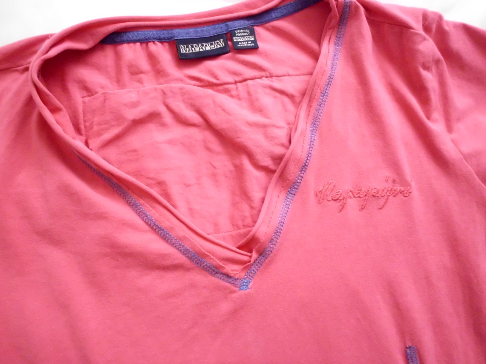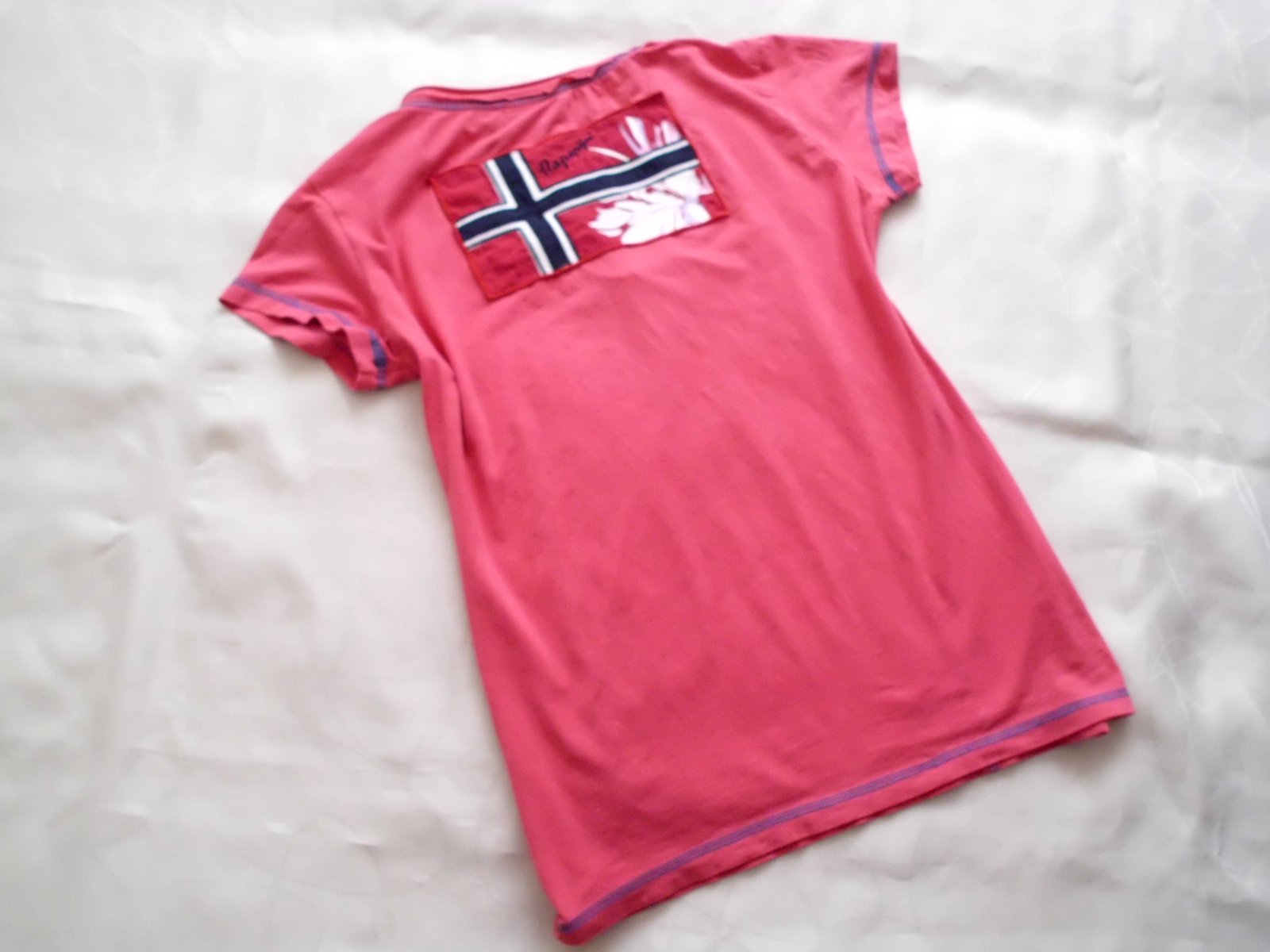 Predám dámske tričko Napapijri vel. M , šírka 48 cm, dlžka 62 cm, rukáv 11 cm, tmavoružová farba, tenšie pružné pekne sa prispôsobí, vzadu vlavo zašitá malinká dierka pod rukávom pri nosení nie je vidno, inak super stav