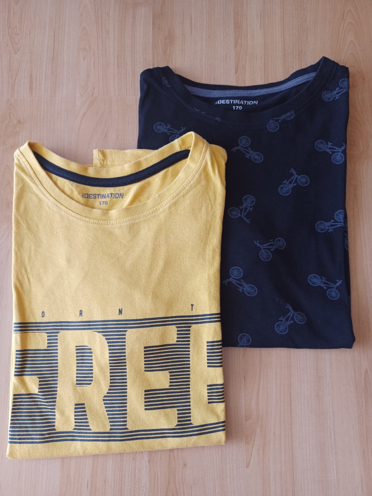 Predám bavlnené tričká pre chlapca s krátkymi rukávmi. Jedno je žltá, druhé čierna so vzorom bicyklov (aj pôvidne bolo dvojbalenie). Veľkosť pisaná 170, ale sú menšie. Zodpovedá veľkosti 164. Tričko je po jednom dieťati, bez poškodení.