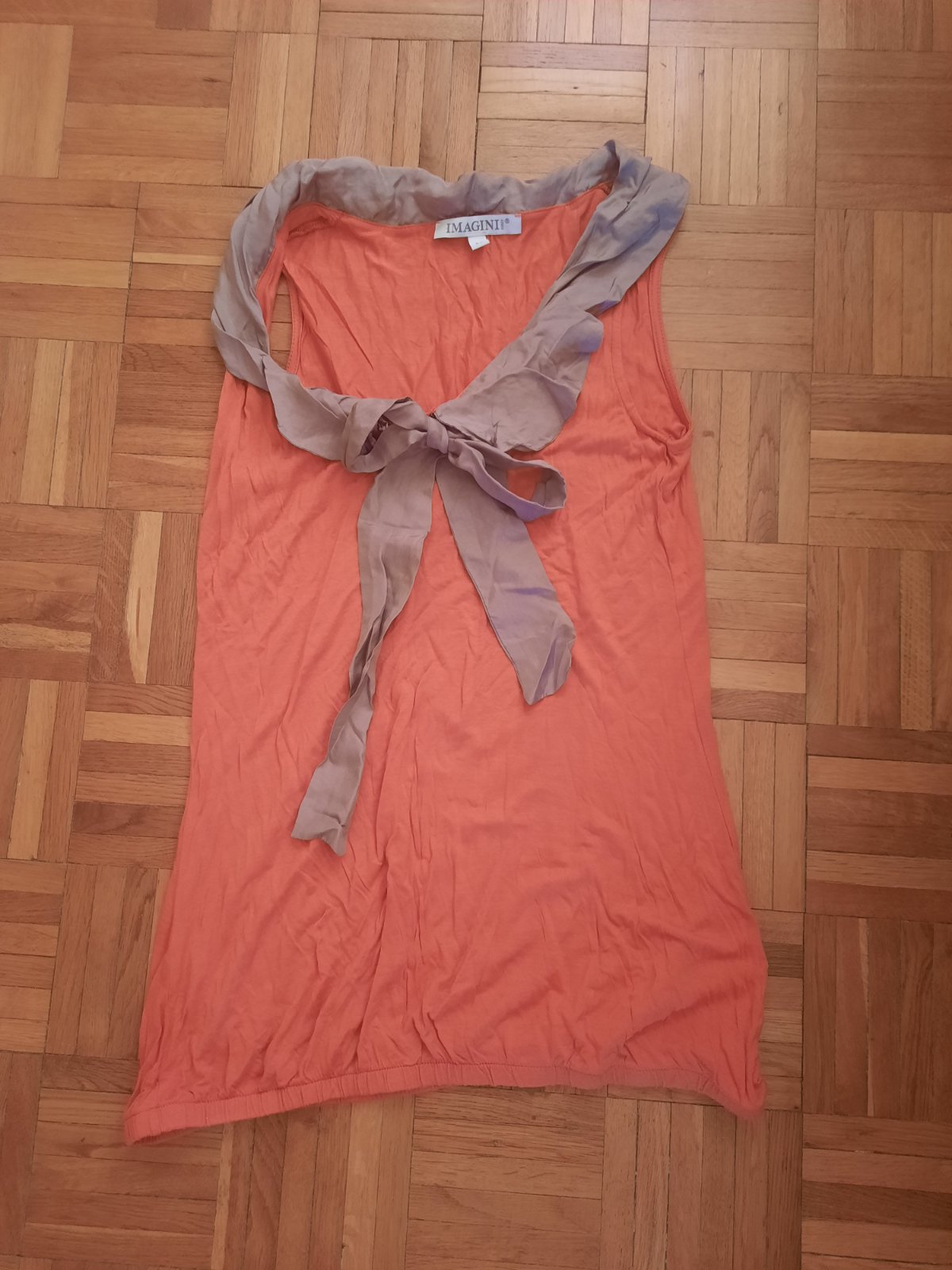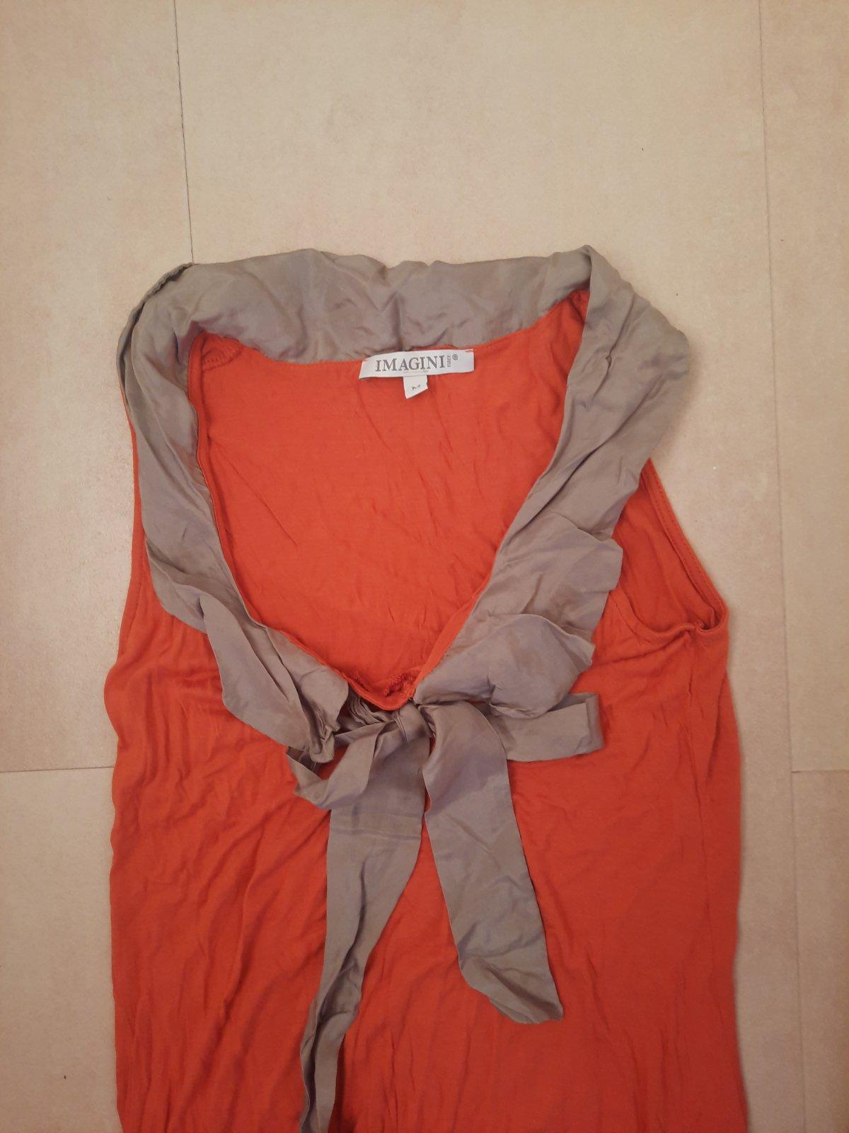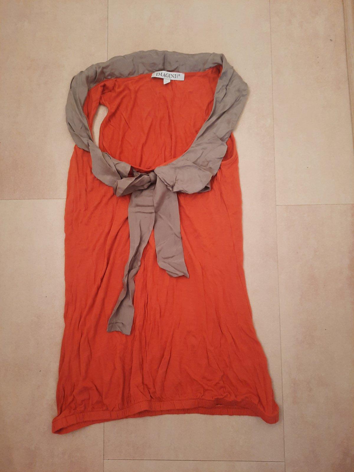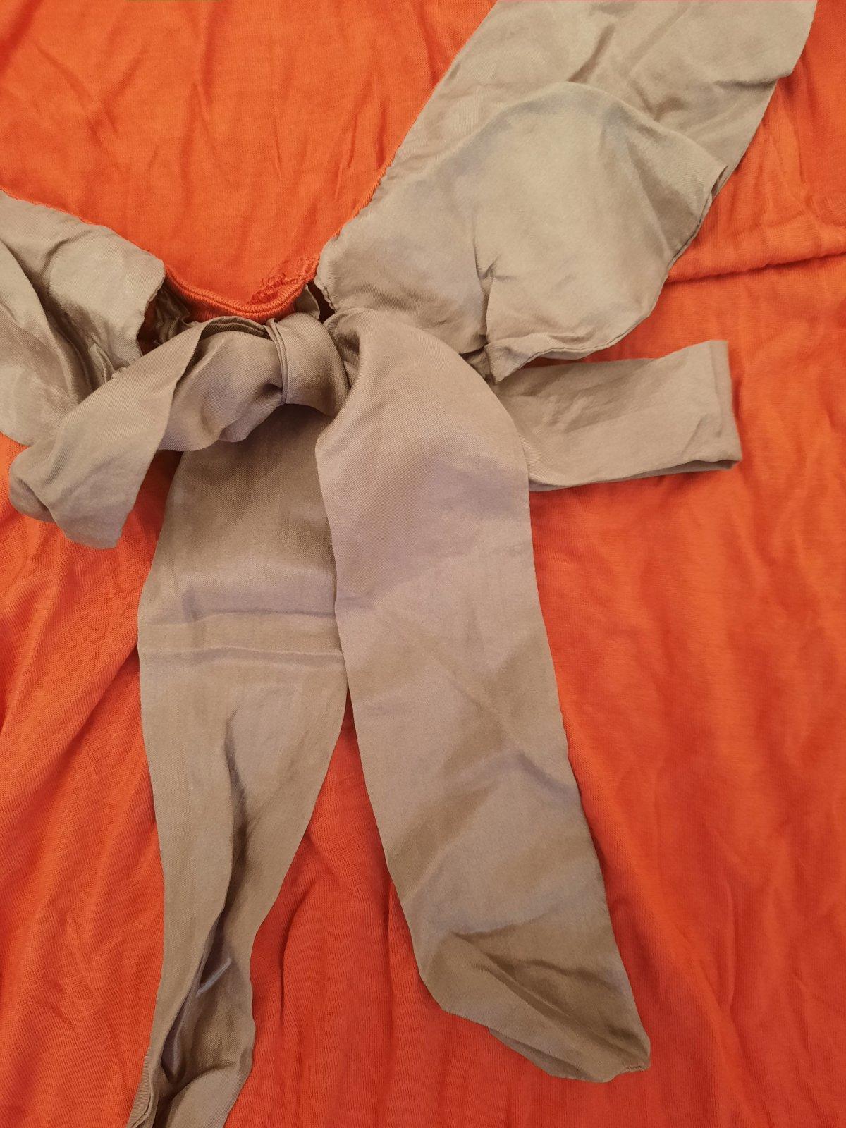 tričko bolo možno 2x oblečné, nakoľko je na štihlejšie postavičky bez vytrčajuceho bruška :D ... keby nemam brucho (nie tehotenske), tak by som ho rada nosila. zavazuje sa okolo krku.