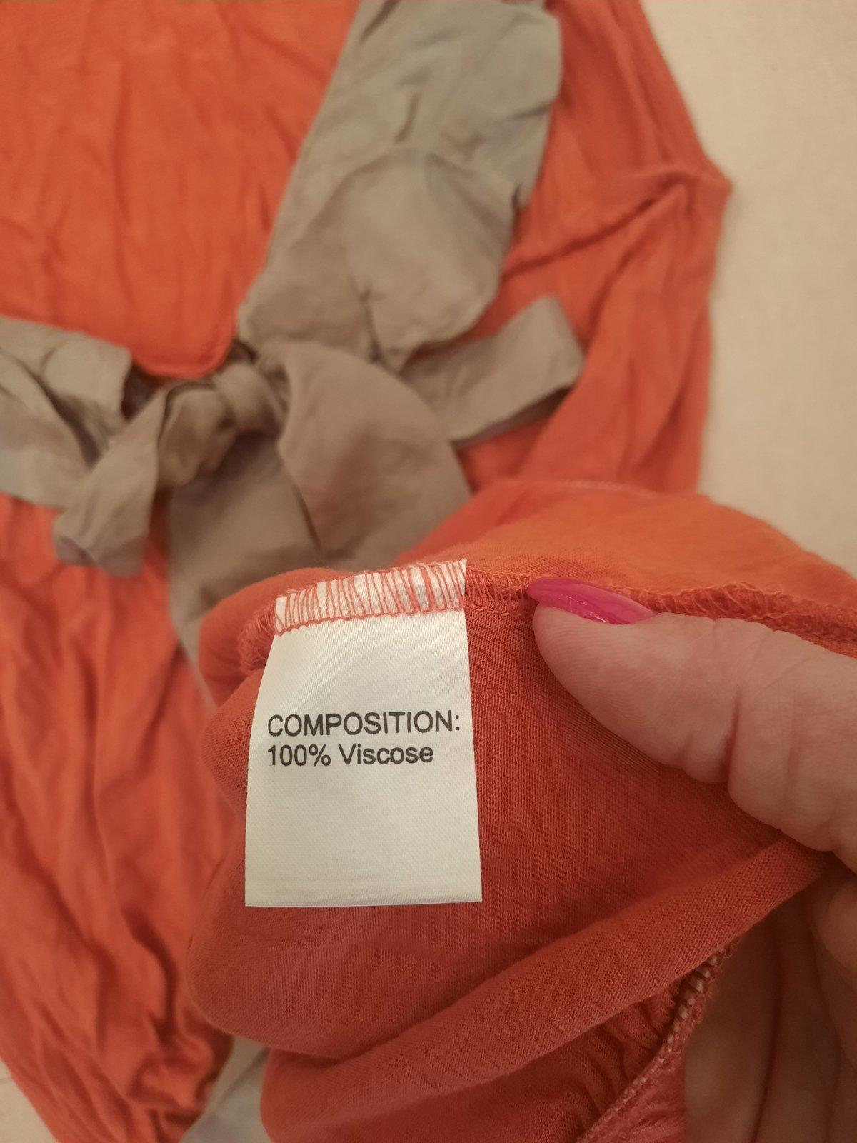 okolo krku. Spodok je nariasený gumou. Veľkosť píše M, ale sedí