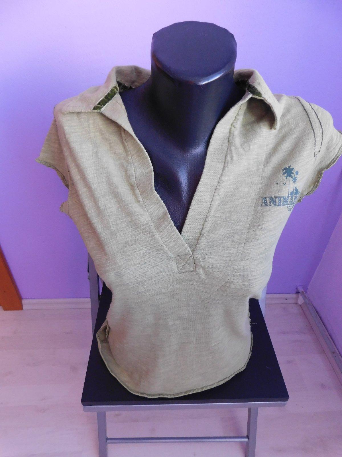 Veľmi pekné tričko ,svetlozelenej farby s pekným výstrihom.Veľkosť je na 168 cm výšku, ja mám 164cm a zdá sa mi tesnejšie :) Na spodku je malý slabý fliačik, mne pri nosení nevadil