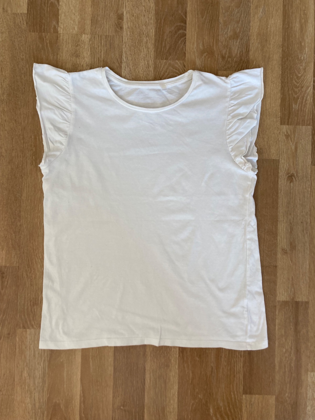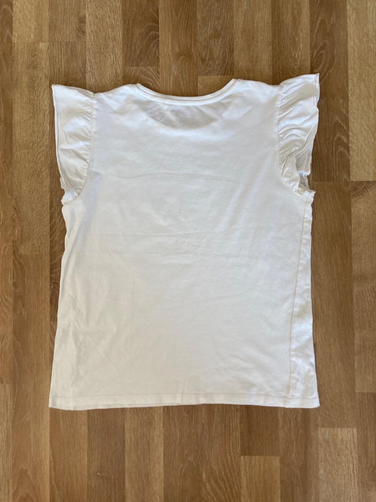 Tricko s gliterovym napisom. Rozparky. Na latke vidno pranie.