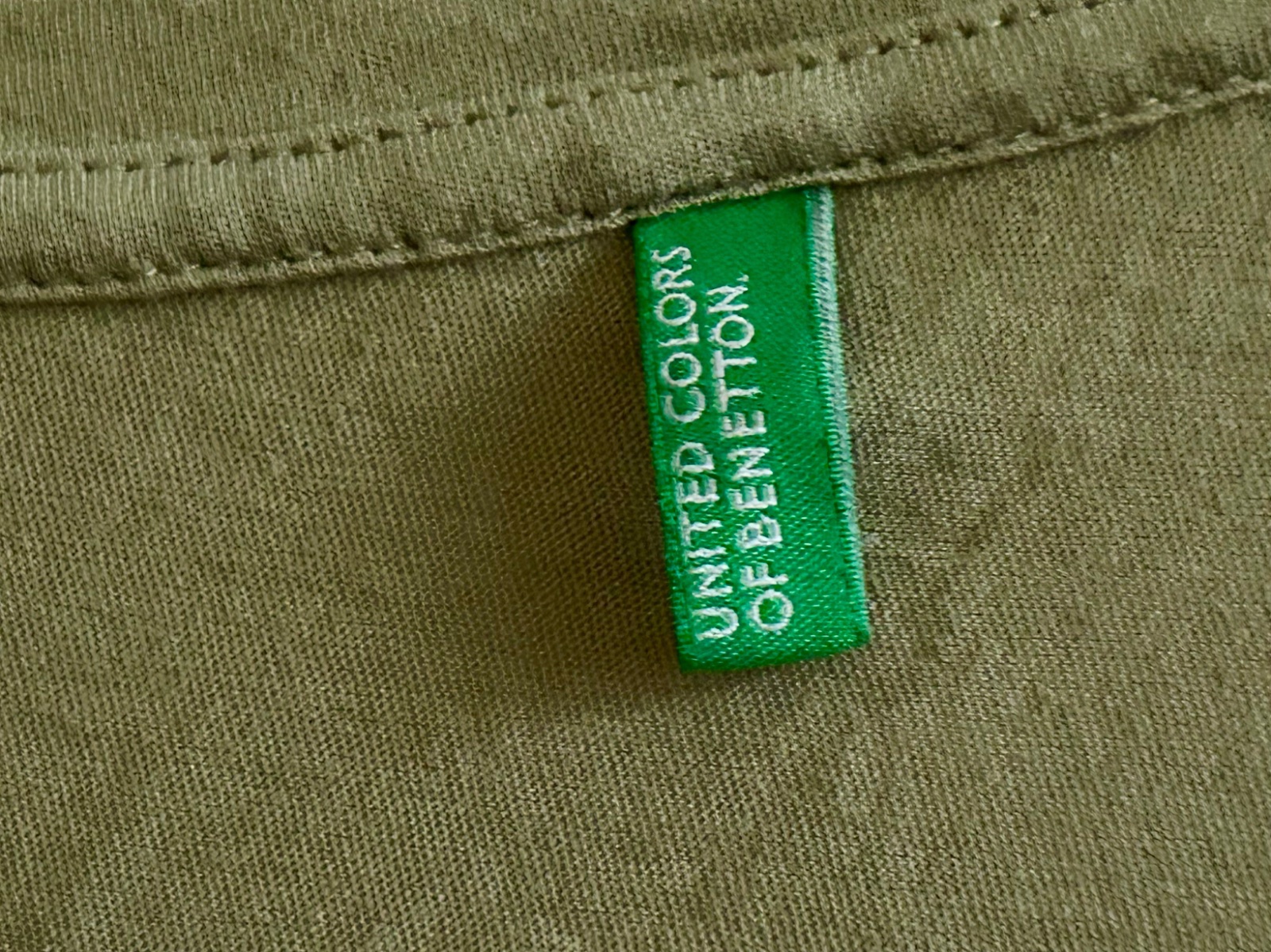 Predám tričko zn.UNITED COLORS OF BENETTON made in Italy, moderna khaki farba, zloženie: 100% jemná bavlna, veľmi príjemné na telo. Veľkosť L, rozmery: hrudník 52x2 cm, dĺžka 62 cm. BA alebo poštou+poštovné.