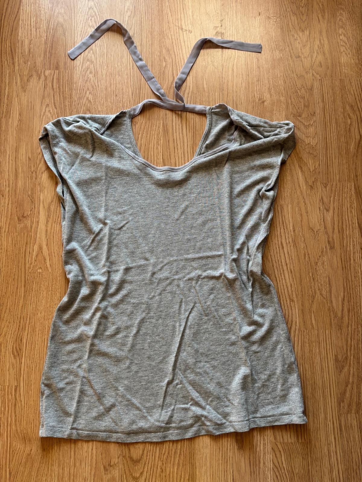 Veľmi pekné pohodlné tričko voľnejšieho strihu vo veľmi dobrom nosenom stave, len vzadu dole pár žmolkov, len mierne priesvitné, dĺžka od pleca 70cm, šírka pod pazuchami 50-58cm.
