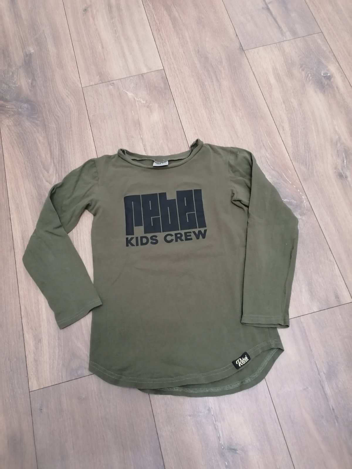 Tenké tričko, skôr slim strih, veľkosť na štítku sa sprala ale myslím ze to bolo 128, sedi kľudne aj na 122. Dĺžka od krku po spodok cca 46 cm.