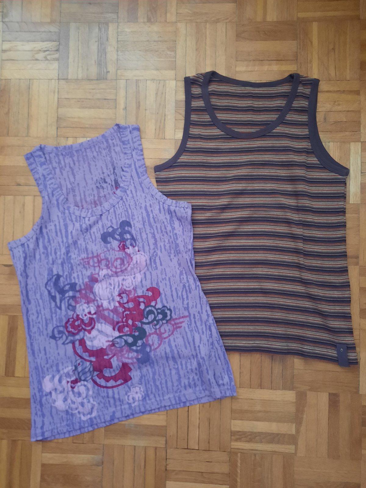 Predám 2 dámske tielka- hnedé (D-55 cm) pásikavé bolo len vypraté. Je to super bavlnený materiál. Fialové (57 cm) je tenšie, vzdušné, jemne priesvitné medzi vzormi. Sú vhodné aj pre staršie dievčatá.