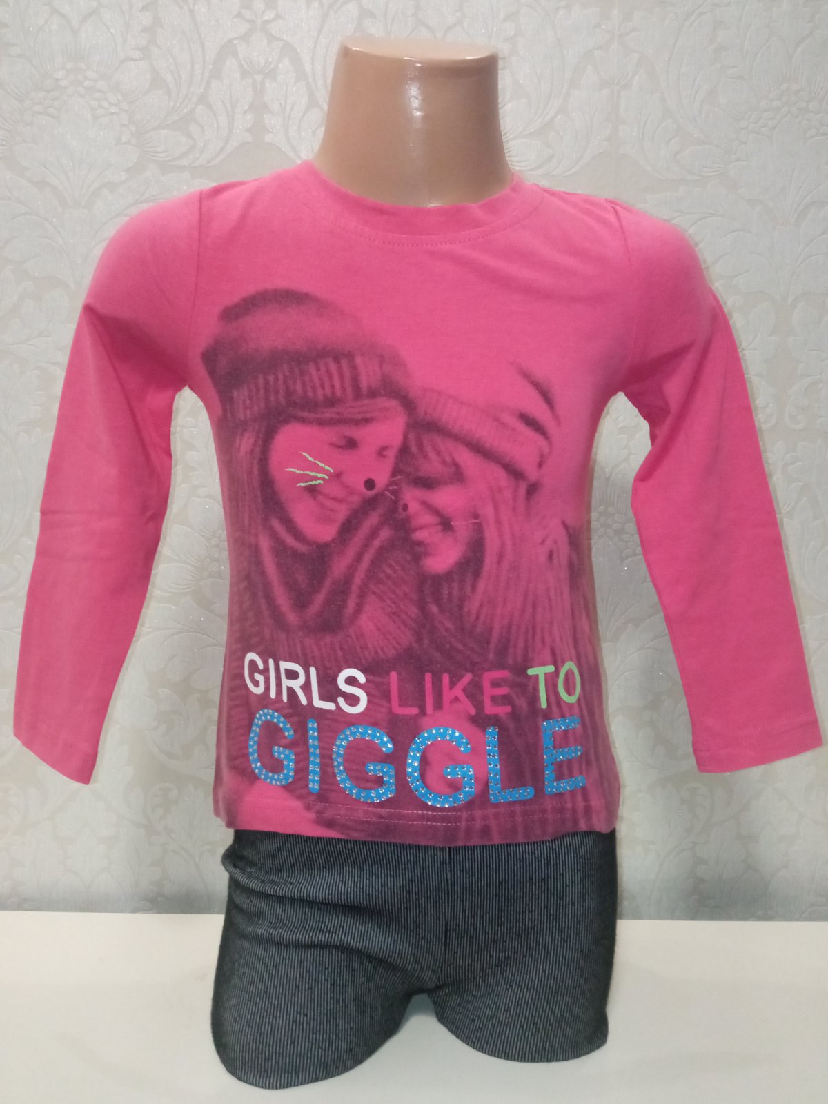 Dievčenské tričko so vzorom a kamienkami (98)