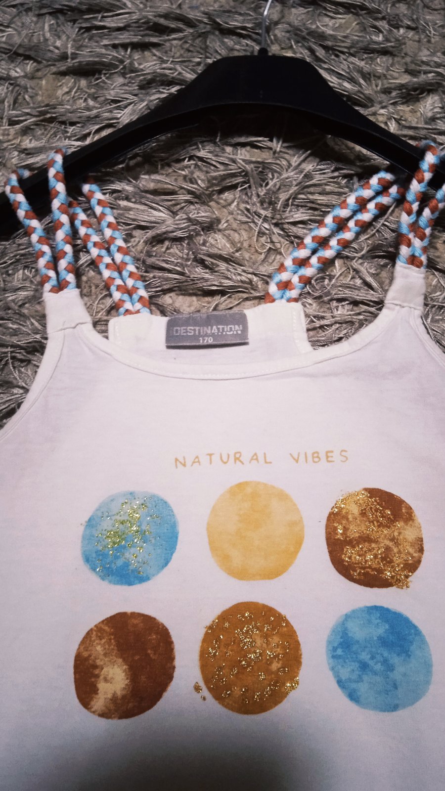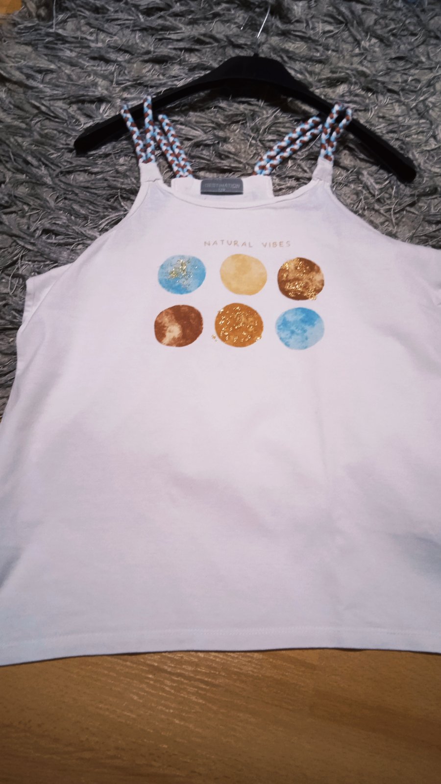 Pekne tielko na leto, malo nosené, nepoškodené, značky Destination, dĺžka 58 cm, šírka pod pazuchami bez natiahnutia 42 x 2 cm povolí na viac