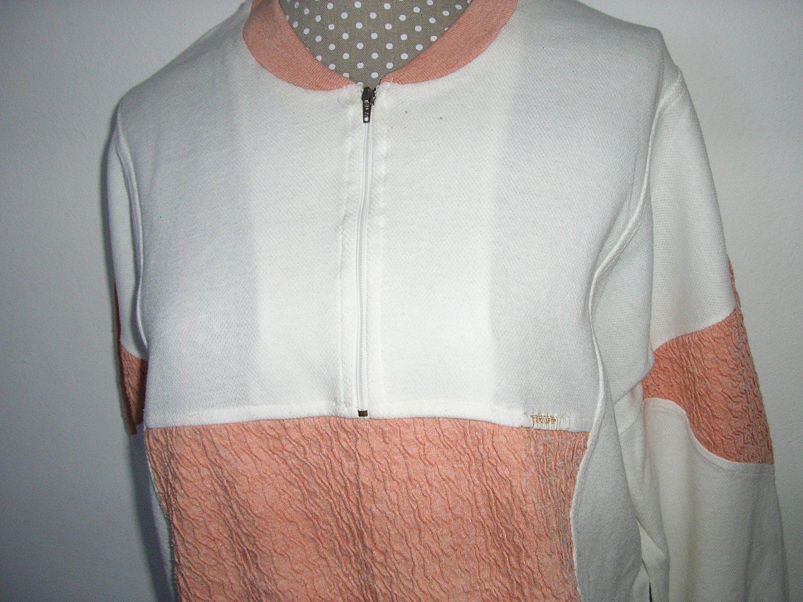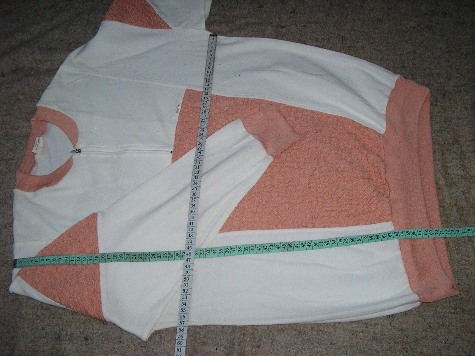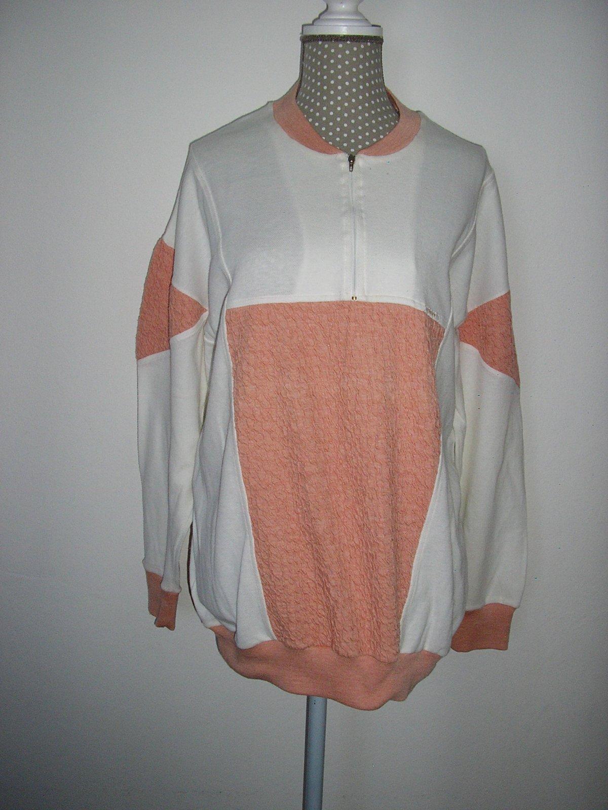 Kombinované farebné tričko s dl. ruk. vpredu zips, rovný dolný okraj – patent. Miery viď. na obrázkoch. Stav – zánovný.
