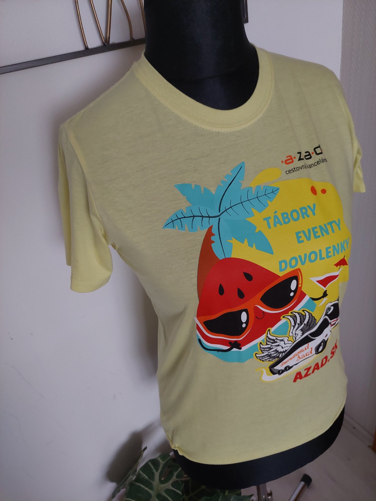 Syto zlte damske tricko s kratkym rukavom znamej znacky HARD SODA. Povodna PC 29,90!!! Material krasne elasticka bavlna sytej zltej farby Na tricku klasickeho strihu prekrasna potlac zeny s kridla...