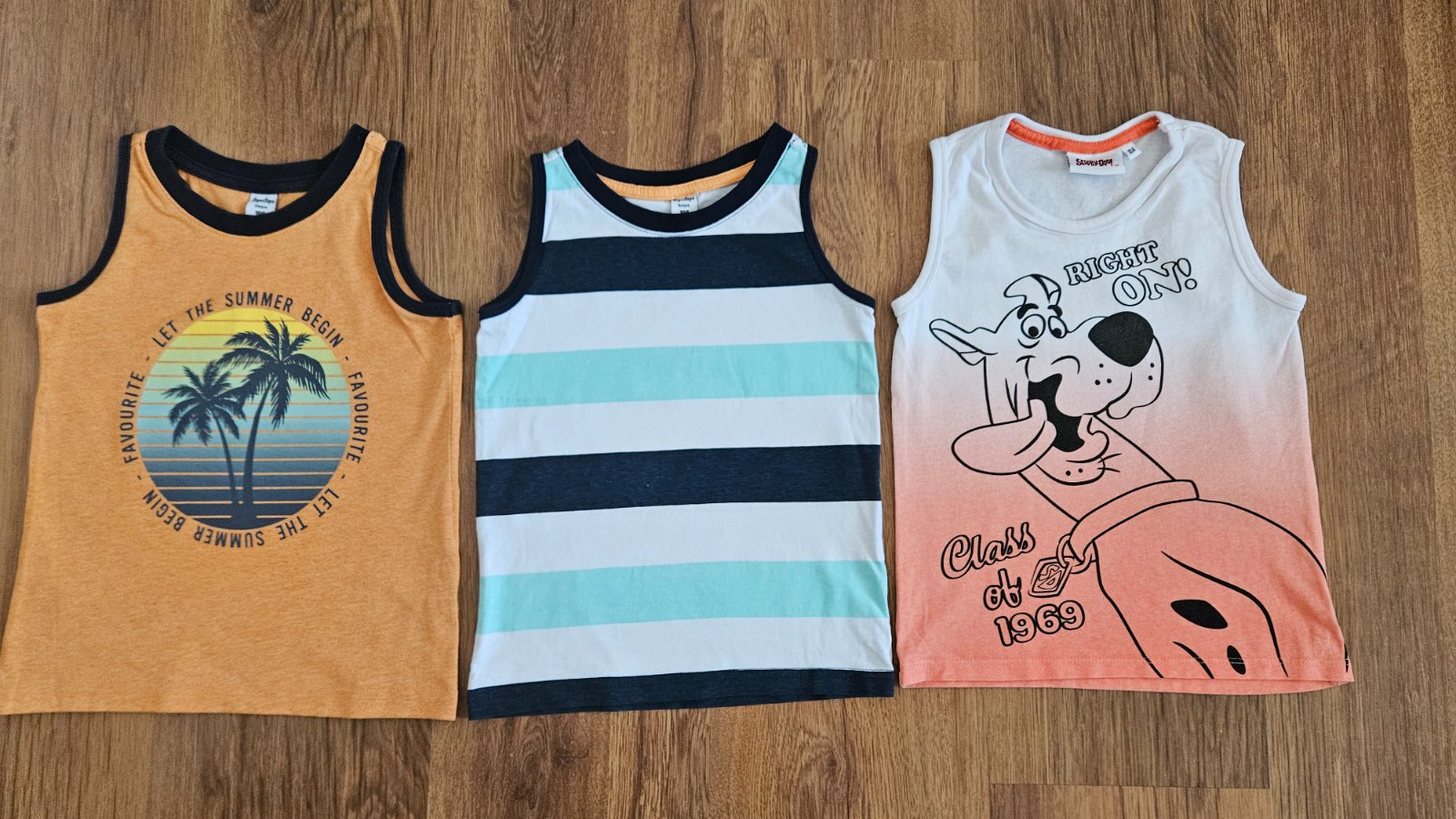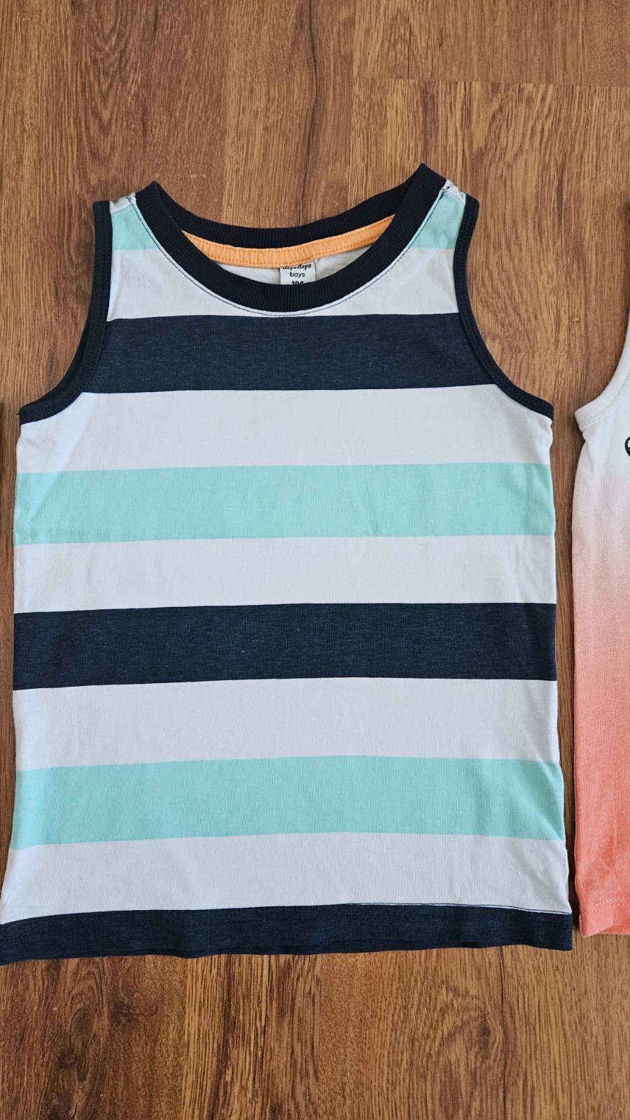3 ks chlapčenských tielok. Najviac nosené bolo oranžové, má jemné žmolky z prania.