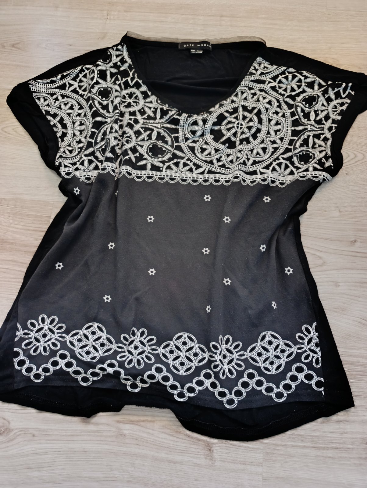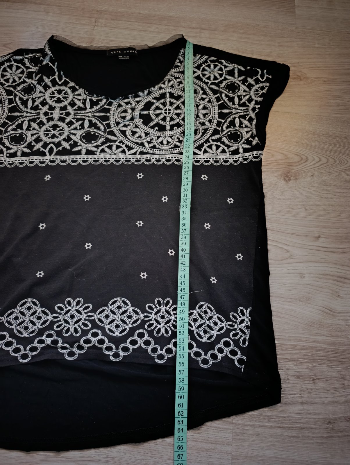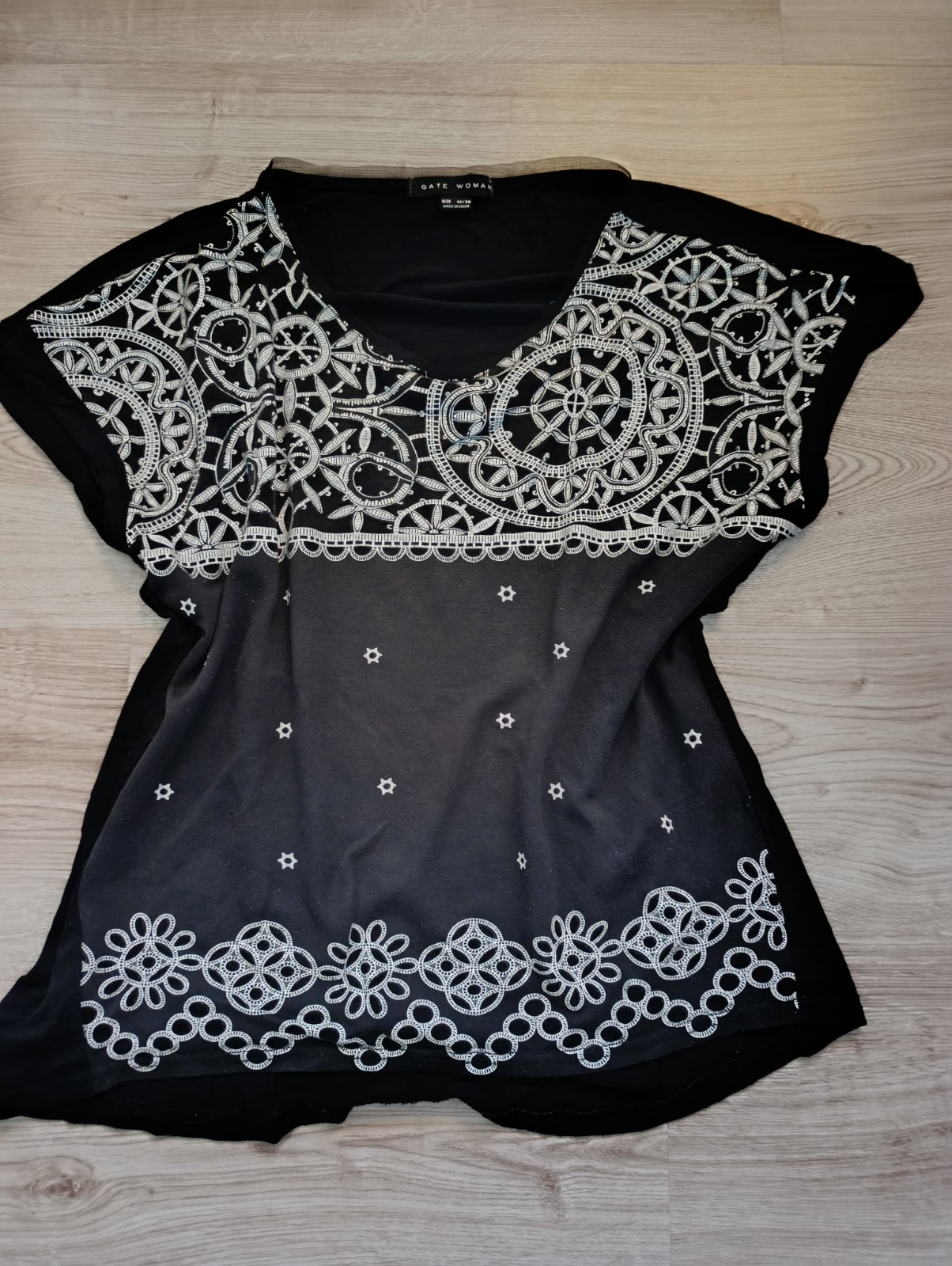 Tričko je vpredu v hornej časti kombinované s priehľadnou sieťkou, voľný strih sedí aj na L.