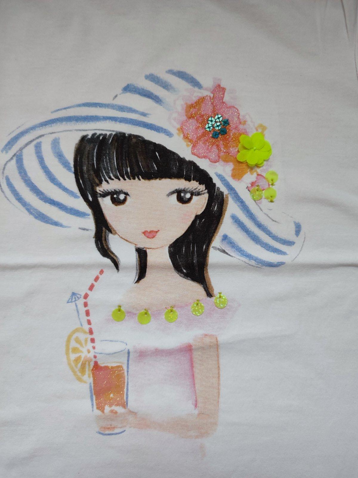 Dievčenské značkové bavlnené tričko. Dĺžka je 50cm,obvod hrudníka je 66cm a obvod pása je 68cm. kód 343A