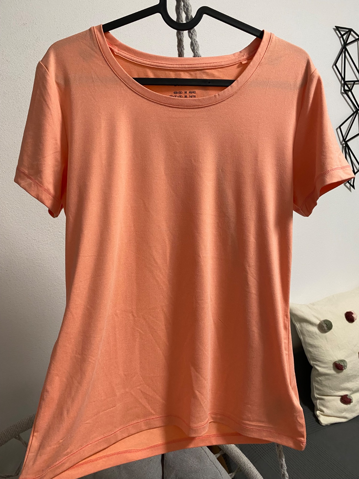 predám minimálne nosené tričko jasnej lososovej/koralovej farby, píšu veľkosť S, sadne aj na M, značka Crivit, materiál: 90% polyester, 10% elastan, ležérny strih dľžka od ramena 67 cm, šírka v pod...
