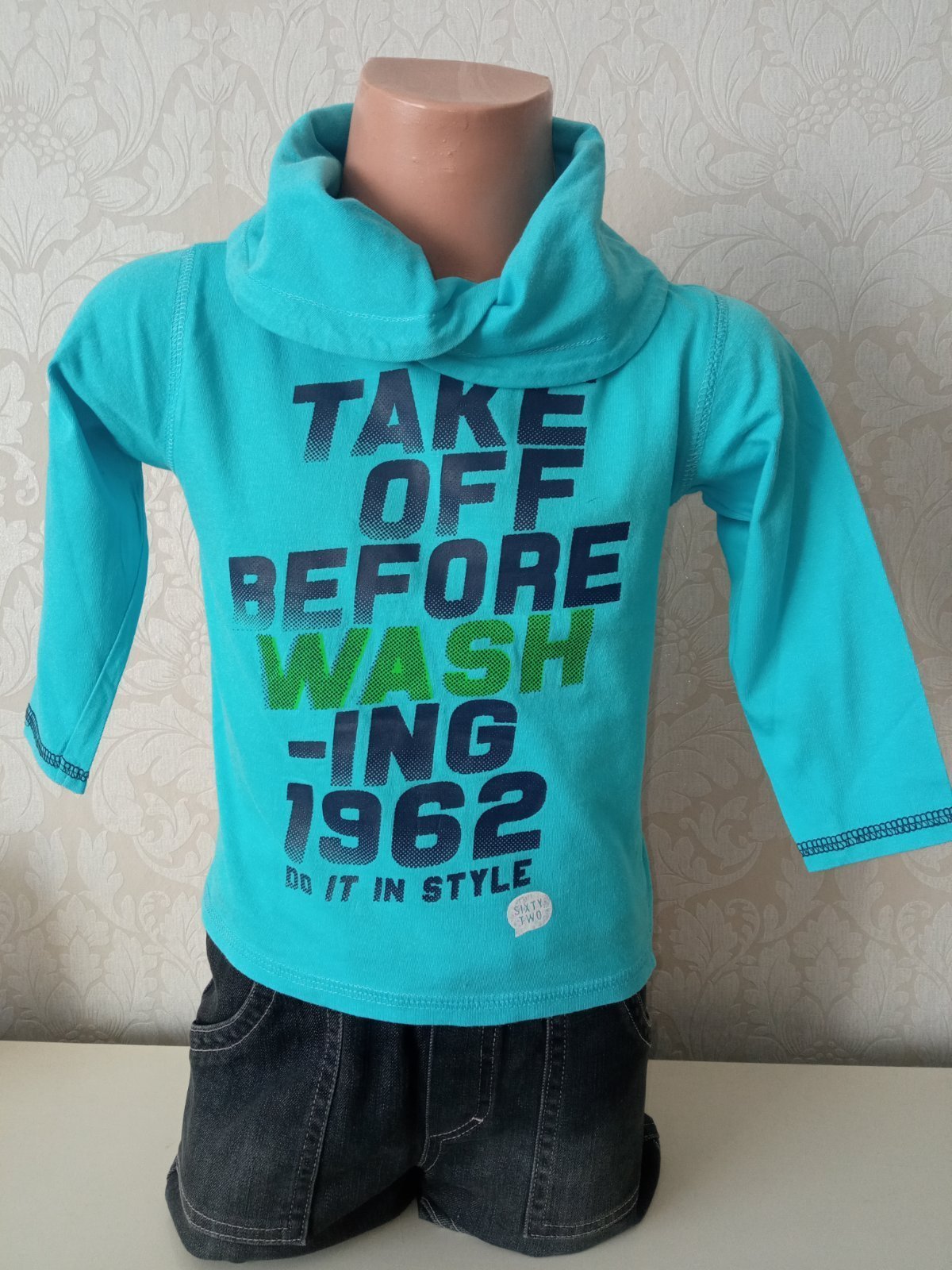 Chlapčenské tričko s dlhým rukávom s rolákom, tenké, s písmenami, elastické. Veľkosť:92. Materiál:100%bavlna.